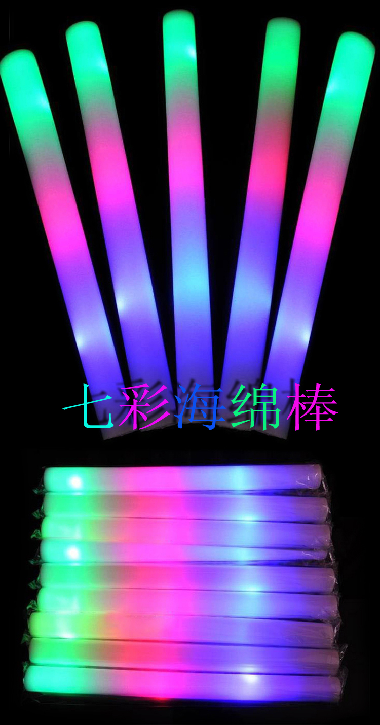 【产品名称】大号七彩发光海绵棒--带闪烁,可变化闪光颜色