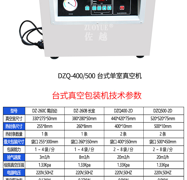 • 고급 DZQ-400 데스크탑 단일 챔버 진공 기계
