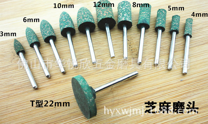 备注:芝麻磨头相对于橡皮磨头来说,里面加有磨料,锋利度更高,打磨锋利快捷,效率高,自身的消耗也比橡皮磨头的快!