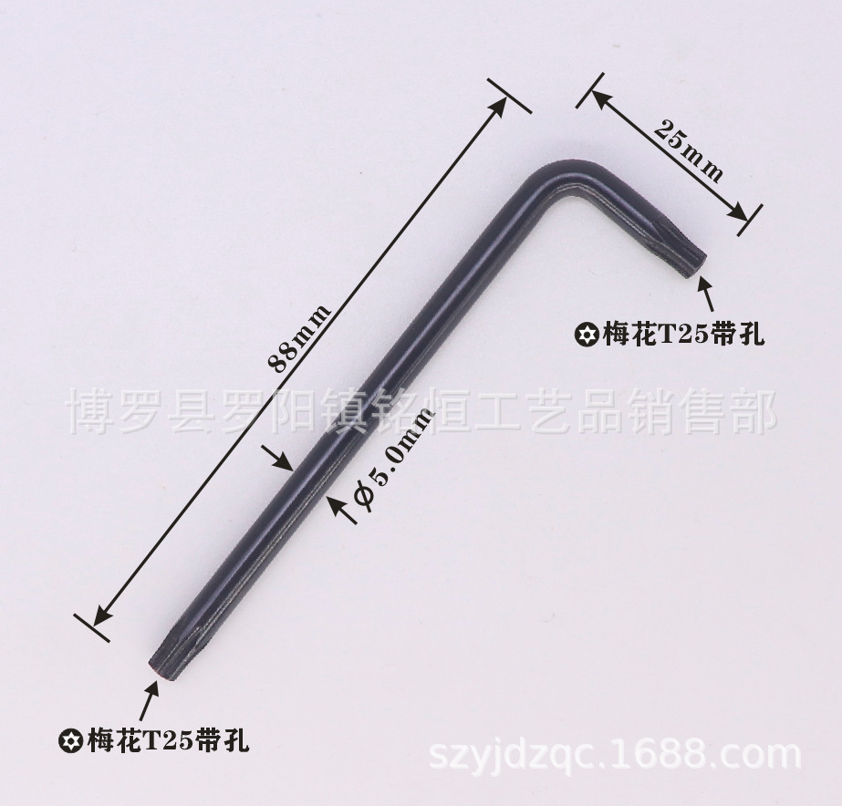 刀杆粗4.5mm,长边(T25梅花带孔)85MM,短边(T25梅花带孔)25MM,