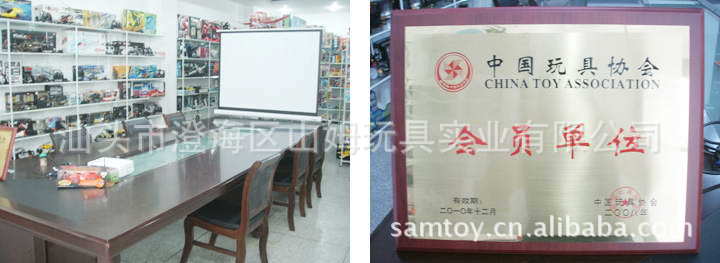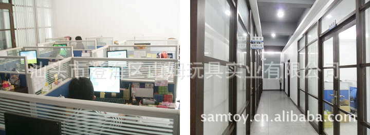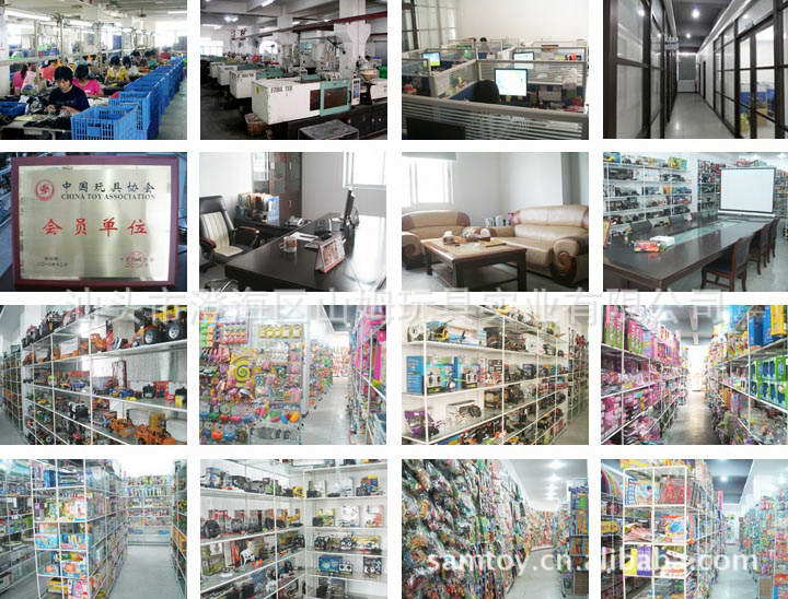 山姆玩具实业有限公司位于汕头市澄海区,地理位置优越,交通便利。经过近几年的发展,已建立一套完整的质量保证体系,拥有大型标准通用厂房,生产规模化、现代化,并设有专门的产品开发部和模具制作中心,形成配套的一条龙生产流程。我们拥有着一支高素质的技术工程师,在产品的设计、开发、生产以及质量控制方面都具有专业的国际水准,许多大型采购商纷纷同我们洽谈有关OEM、ODM的各种塑料玩具制品、游泳用品、遥控玩具产品、玩具礼品赠品的订单。相信我们对玩具的专业知识和水平,会让您对我们的高质量、高品味的产品和精湛的服务满意。