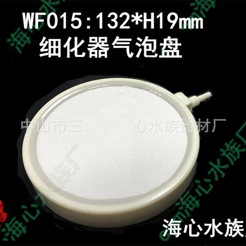 低压空气静音细化器气泡盘溶氧量高而且出气气泡均匀细腻,超细密气泡可用于分解CO2、氧殖、观赏、培菌等多种用途,共有3种尺寸规格可选用:WF014:107*H19mm,WF015:132*H19mm、WF016:200*H27mm,多种尺寸多种选择。