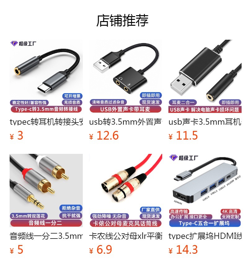TypeC转3.5mmAUX音频线适用于苹果15华为小米三星VIVO手机平板音频转接线音箱