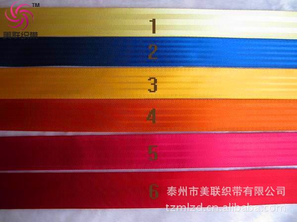 泰州市美联织带有限公司 产品有抗UV安全带,阻燃安全带,抗老化安全带 1.品种:本公司专业生产各类织带,如:150D,300D,400D,600D,900DPP带,提花,提字带,尼龙带,涤纶带,锦纶带,纯棉带,高强涤纶带等w1宠件.3齐包理联:出落 2.纹路:主要有人字纹,平纹带,珠纹,坑纹,斜纹,坦克纹,美国纹等工i0珠带常联货D带公限国 3.用途:产品广泛用于商标,包边,服装辅料,箱包,手袋,鞋材厂,腰带厂等。、尼85。、z0包外5手登 4.规格:公司可生产0.5CM-5CM颜山..装wdw0,美包3 5.包装:普通包装(塑料袋)和出口包装。装o08帐带w:背(牵寺童 备注: 常规织带厂里有库存,如:2CM 900D/600D包边带,2---5CM 平带,颜色齐全,交货迅速。欢迎新老客户前来选购! (美联织带)供应各种安全织带 汽车安全带,聚脂织带,捆绑带规老行纶童健背公m平产主,