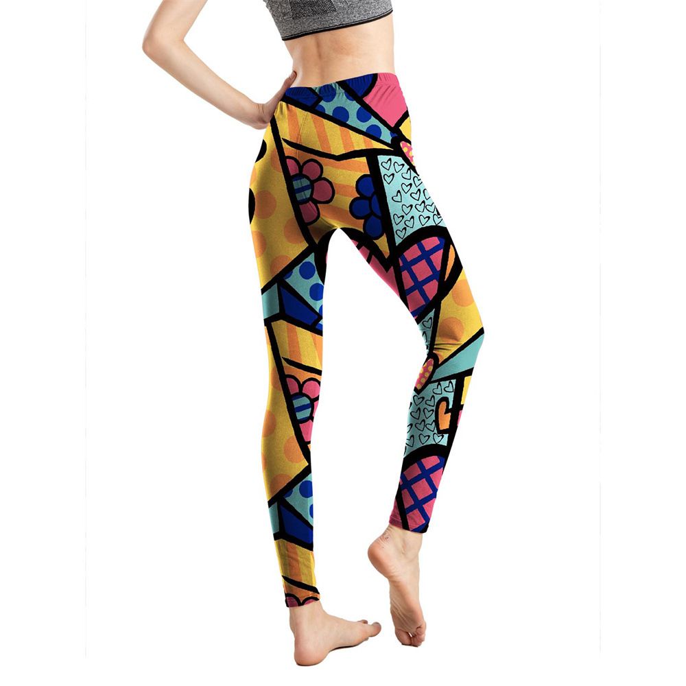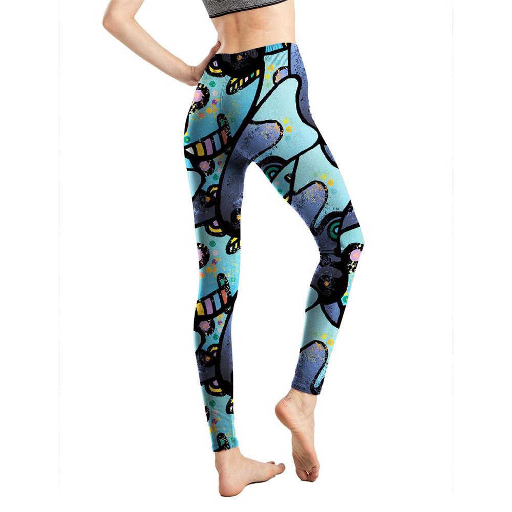 9249 밀크 실크 프린트 레깅스 추상 편지 발목 길이 바지 여성 의상 바지 레깅스스토어 가기