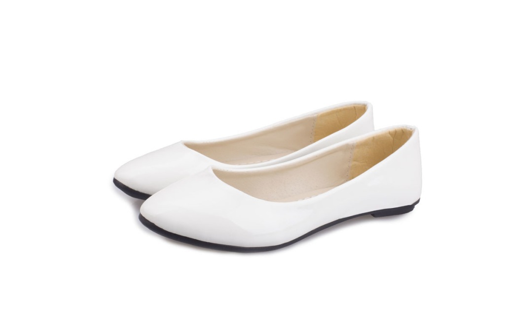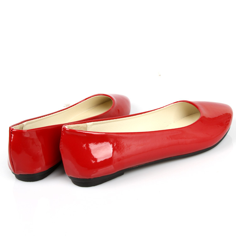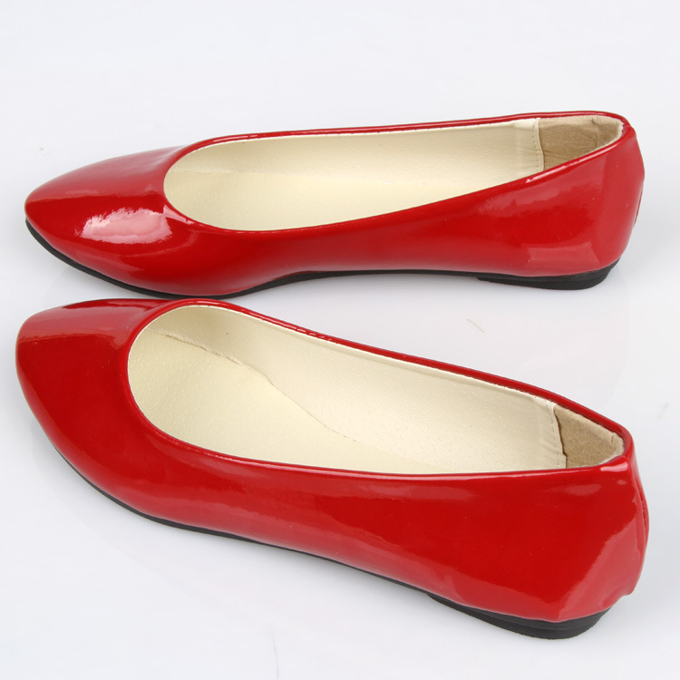 2025 패션 한국어 싱글 신발 플랫 지적 캐주얼 작업 신발 여성 도매 사이즈 42 대형 특허 가죽 여성 신발 국경스토어 가기