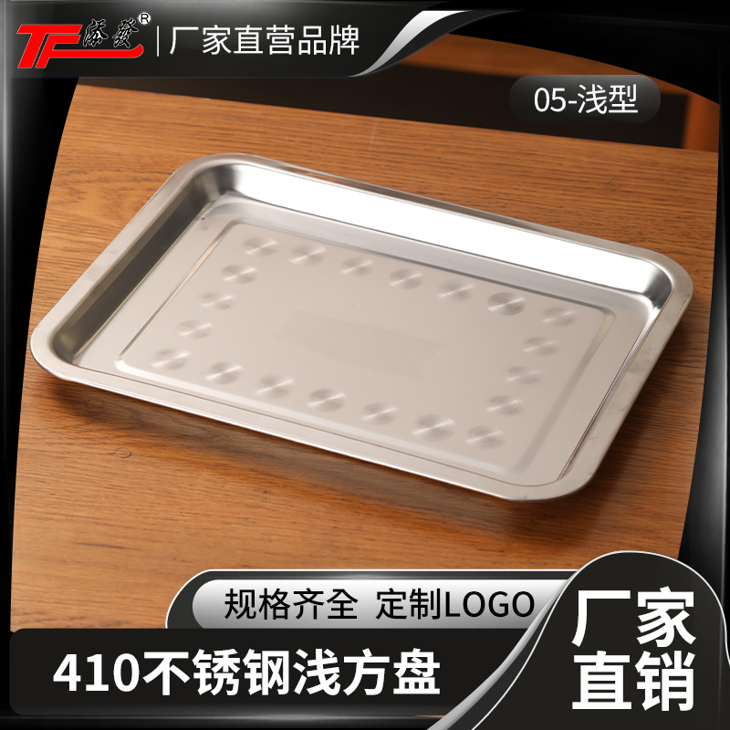 Tiinfa 공장 자기 두꺼운 스테인레스 스틸 사각 접시 직사각형 트레이 물 트레이 얕은 접시 찐 쌀 구이 생선 트레이스토어 가기