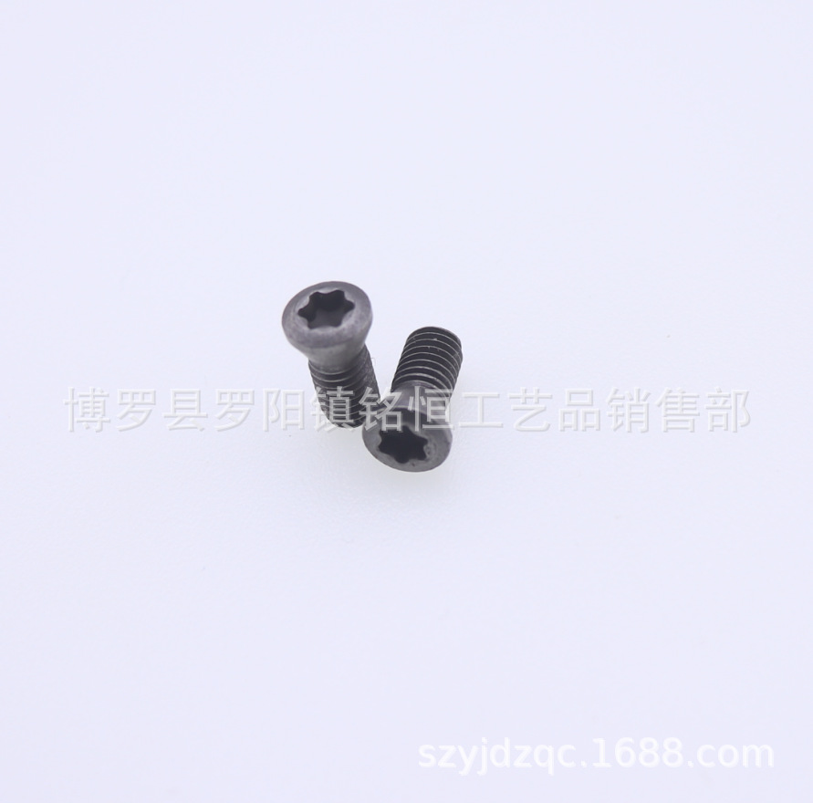 生产销售刀粒梅花螺丝颜色有本色、黑色、古铜色、灰色、亮铬等.材质为合金钢.硬度为50-52度.型号由M1.6M8.0。梅花刀头型号由T4-T60品质优良保证, 适合各种数控车刀 数控铣刀  数控刀粒  数控刀垫 机械加工 等数控刀具配件价格优势!另我司还生产各种刀粒包装盒/梅花扳手/六角扳手适合刀具厂刀粒厂,贸易商经销商,销售批发,零售.欢迎广大客户来来电洽谈!