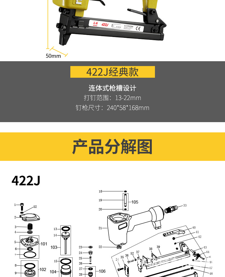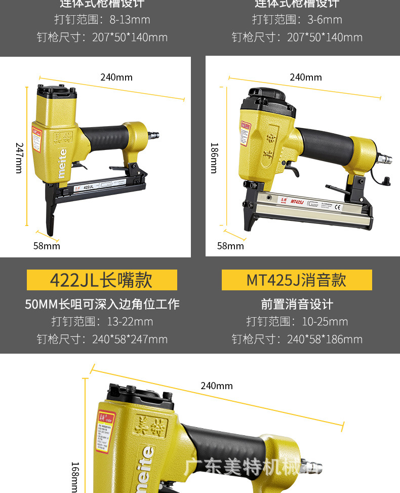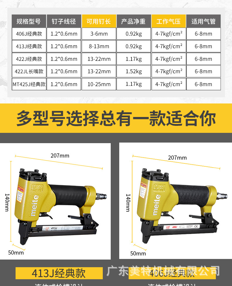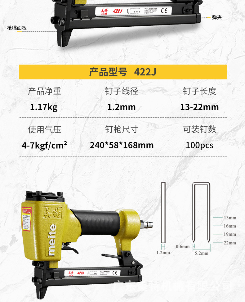 Meite 제조사 공압 코드 네일 건 406J/413J/422JL/425KL/440KB U형 에어 네일 건