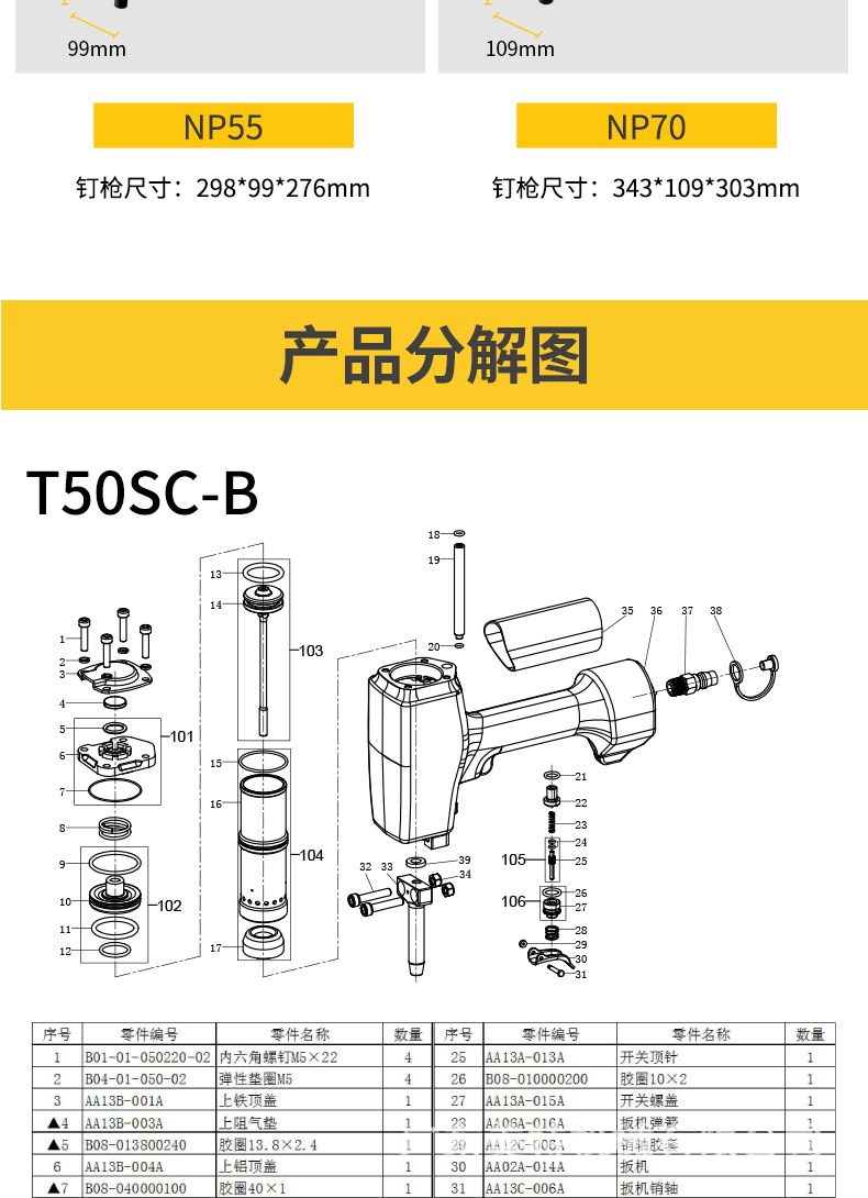 • T50SC-B 리턴 네일 건 (발사 핀 포함)