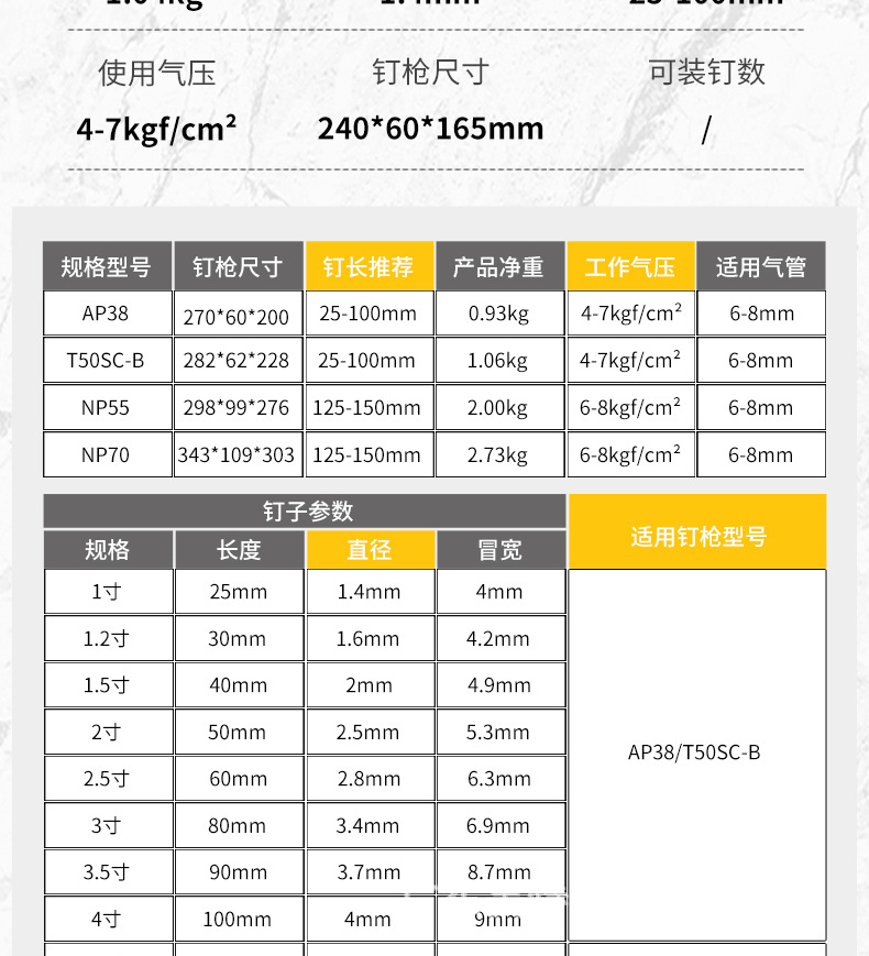 • AP38 리턴 네일 건 (발사 핀 포함)