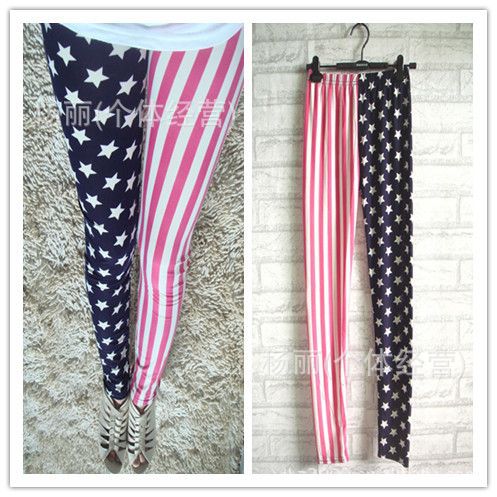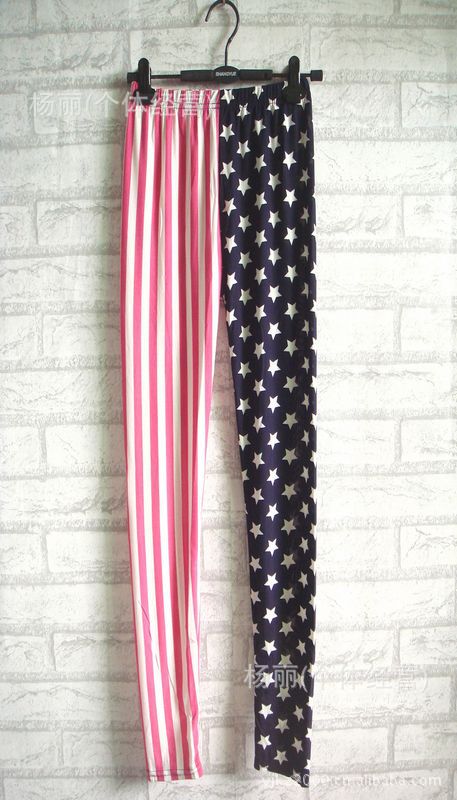 9231 한국 바지 세로 줄무늬 별 인쇄 레깅스 패션 크롭 팬츠 도매 레깅스스토어 가기