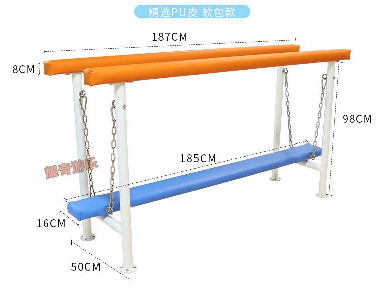 【使用方法】双手握住两边的横杠,沿着平衡木向前方向走动。适当的进行运动。.