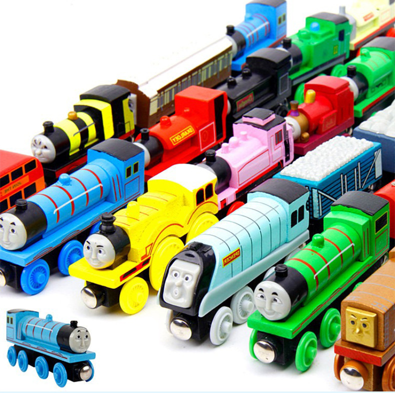 소년과 소녀를위한 나무 어린이 자석 자동차 장난감 교육 기차 트랙 인형 자동차 모델 세트 도매스토어 가기