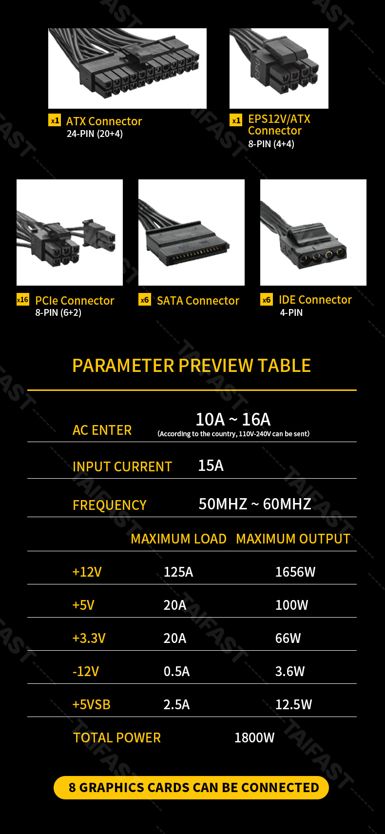 그래픽 카드 준 시스템 음소거 멀티 채널 전원 공급 장치 광산 서버 데스크탑 전원 공급 장치 1800W2000w 지원 8 카드