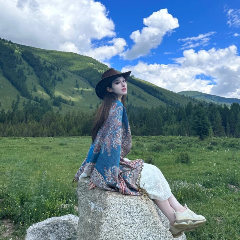 봄, 여름, 가을, 겨울 사계절 민족 스타일 숄 리장 여행 거즈 스카프 여성 자외선 차단 스카프 티베트 사막 따뜻한 망토스토어 가기