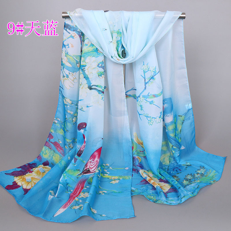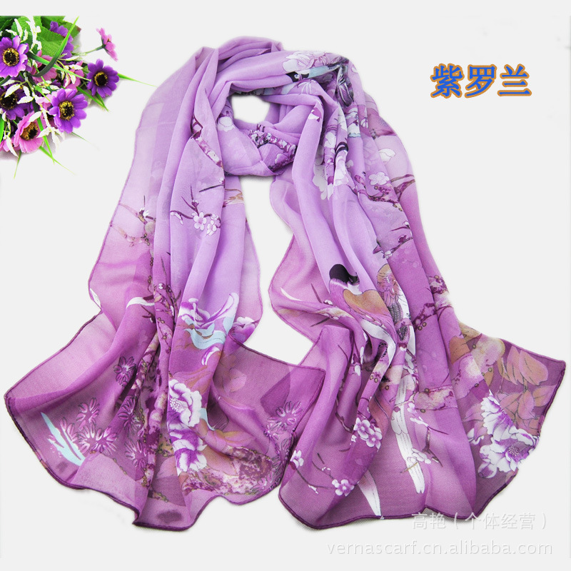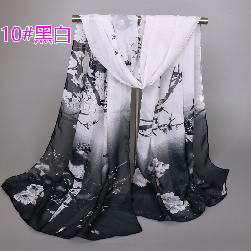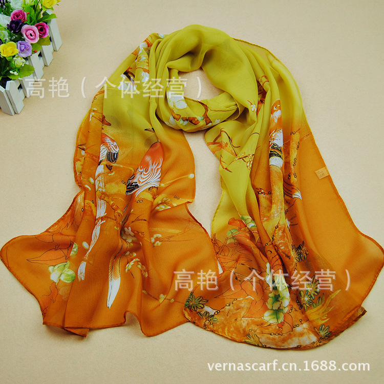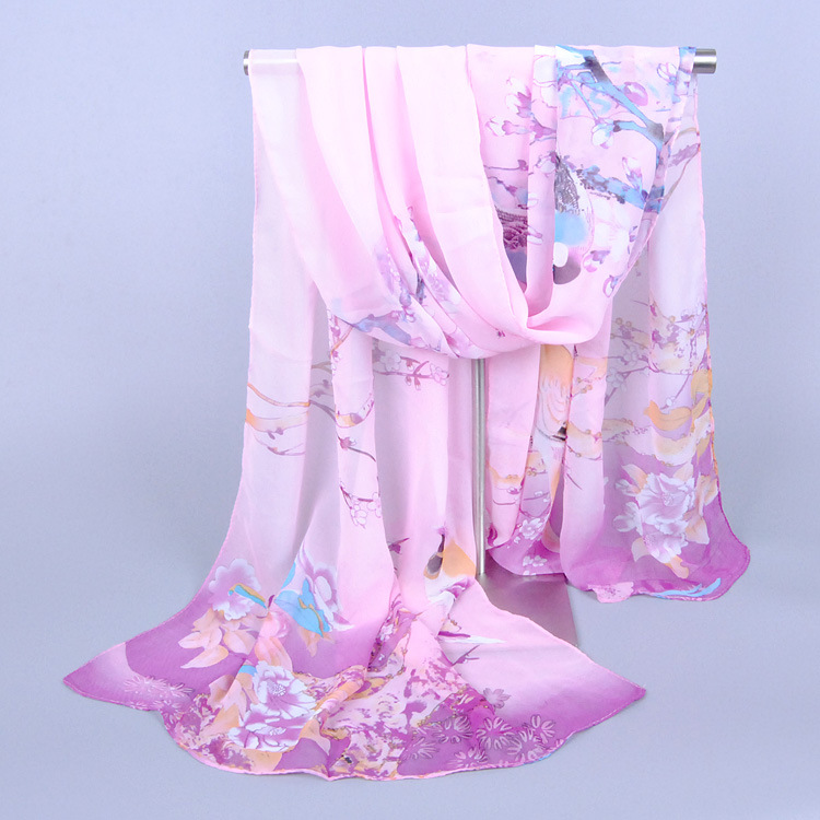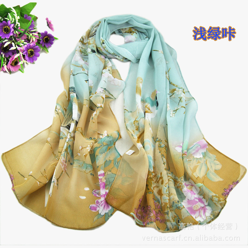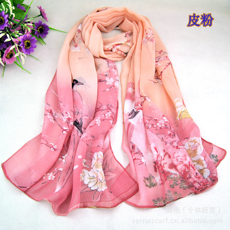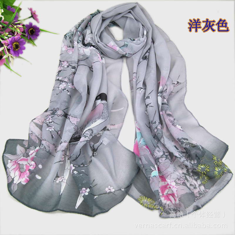 봄과 여름 실크 스카프, 봄을 알리는 까치 그림, 여성용 쉬폰 롱 스카프, 이우 소형 스카프, 꽃무늬 리본 스카프, 도매 판매스토어 가기