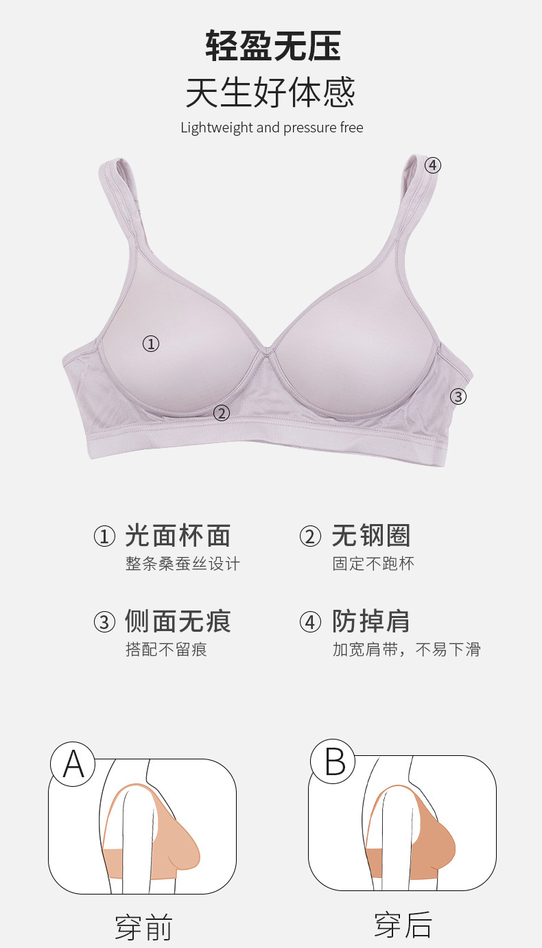 좋은 뽕나무 가장자리 뽕나무 실크 42 니트 실크 뒷 버클 브래지어 편안한 스포츠 통기성 뽕나무 실크 속옷 1174스토어 가기
