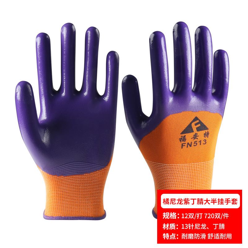 • 오렌지색 나일론 퍼플 니트릴 반장갑