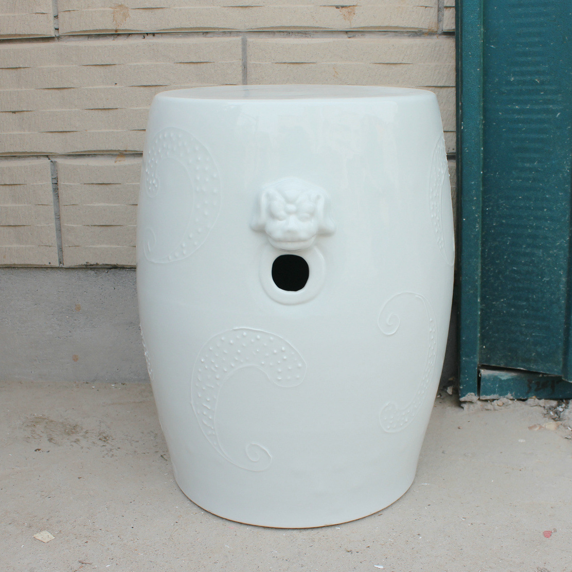Jingdezhen 화이트 라이온 헤드 세라믹 도자기 부두 멋진 부두 앉아 의자 소파 사이드 테이블 드레싱 의자 모델 룸 드럼 의자