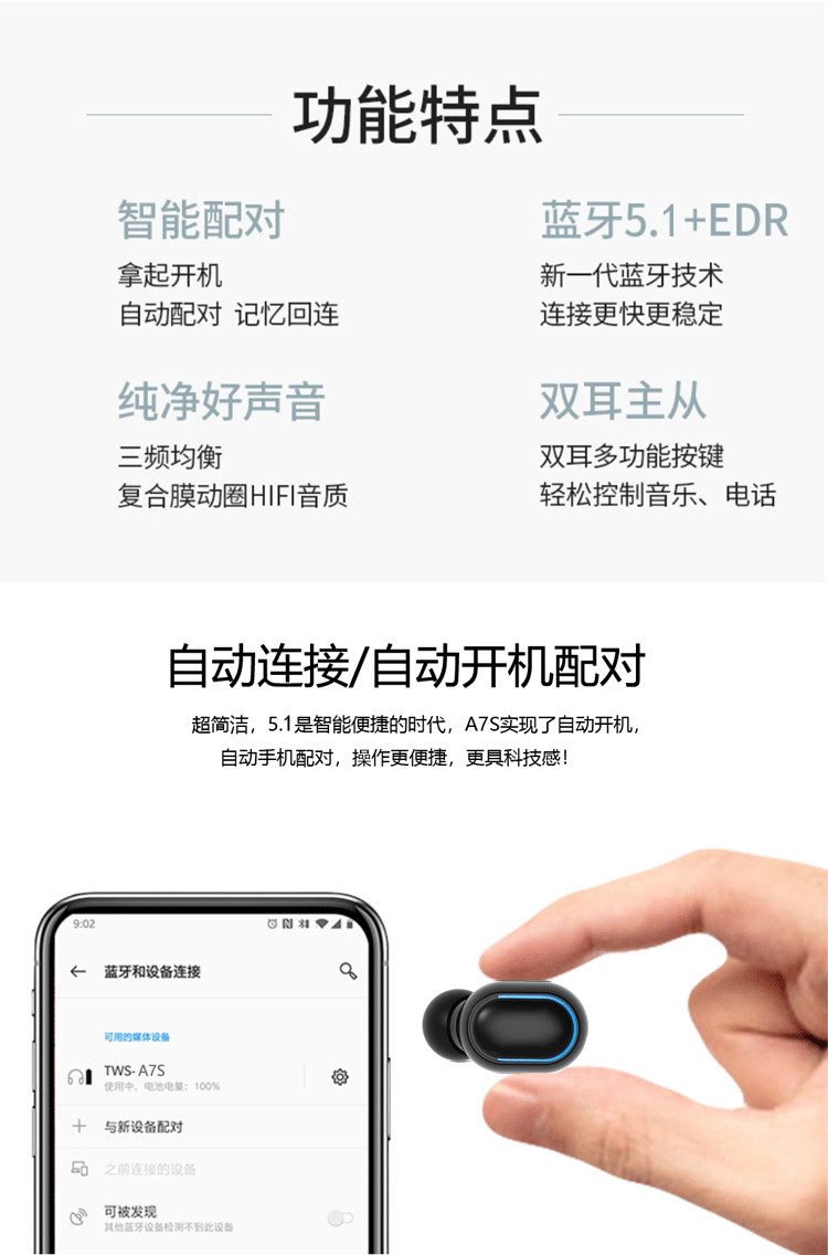 개인 모델 새로운 E7S 무선 바 이노 럴 스마트 미니 인 이어 스포츠 M1 디지털 디스플레이 5.0 제조업체 TWS 블루투스 헤드셋