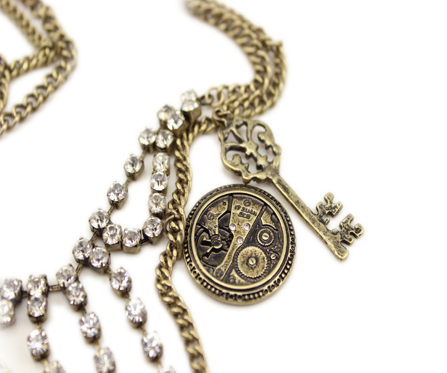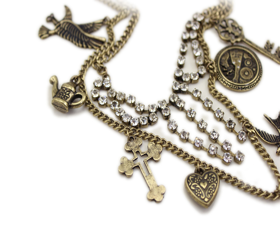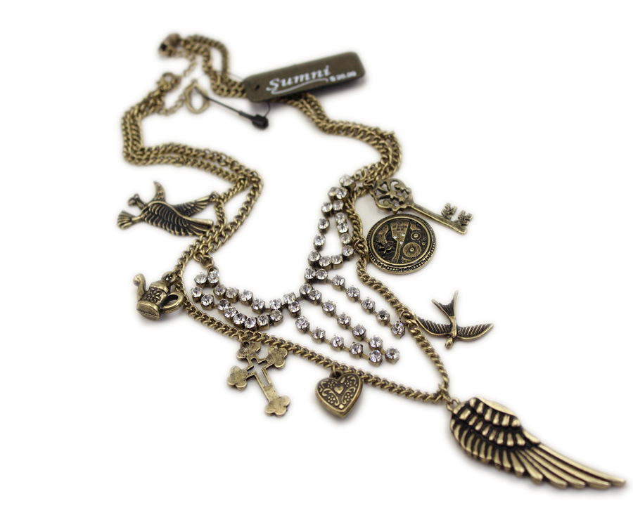 X328 ''유럽과 미국 스타일의 플래시 다이아몬드 활 보석 체인 더블 레트로 여성 목걸이 스웨터 체인스토어 가기