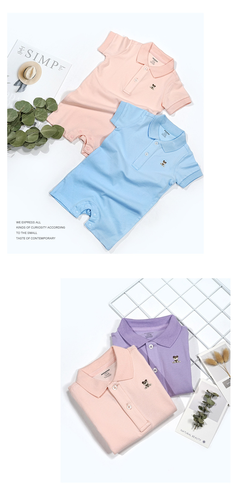 미니존폴로 라펠 반팔 사각바지형 바디슈트 남녀 아기용 원피스 롬퍼 유아용 순면스토어 가기