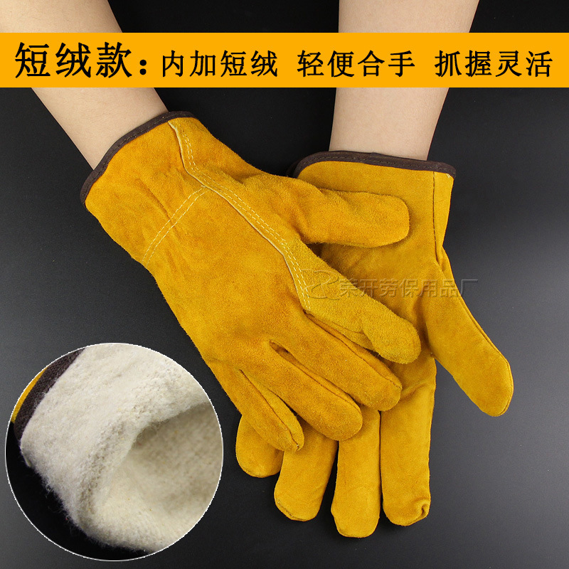 기모 따뜻한 소가죽 용접기 내마모성 단열 보호 장갑 겨울 전기 용접 누빔안감 용접 화상 방지 짧은스토어 가기