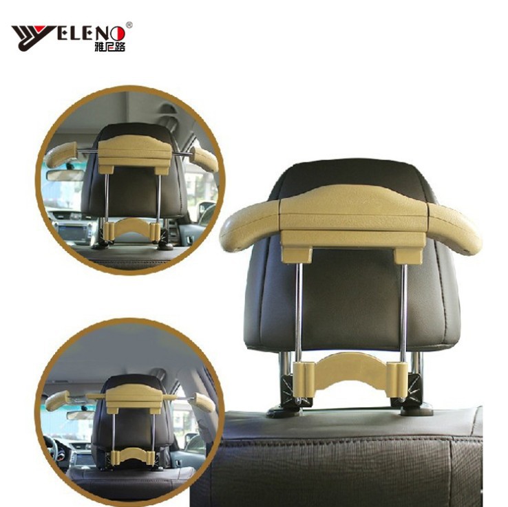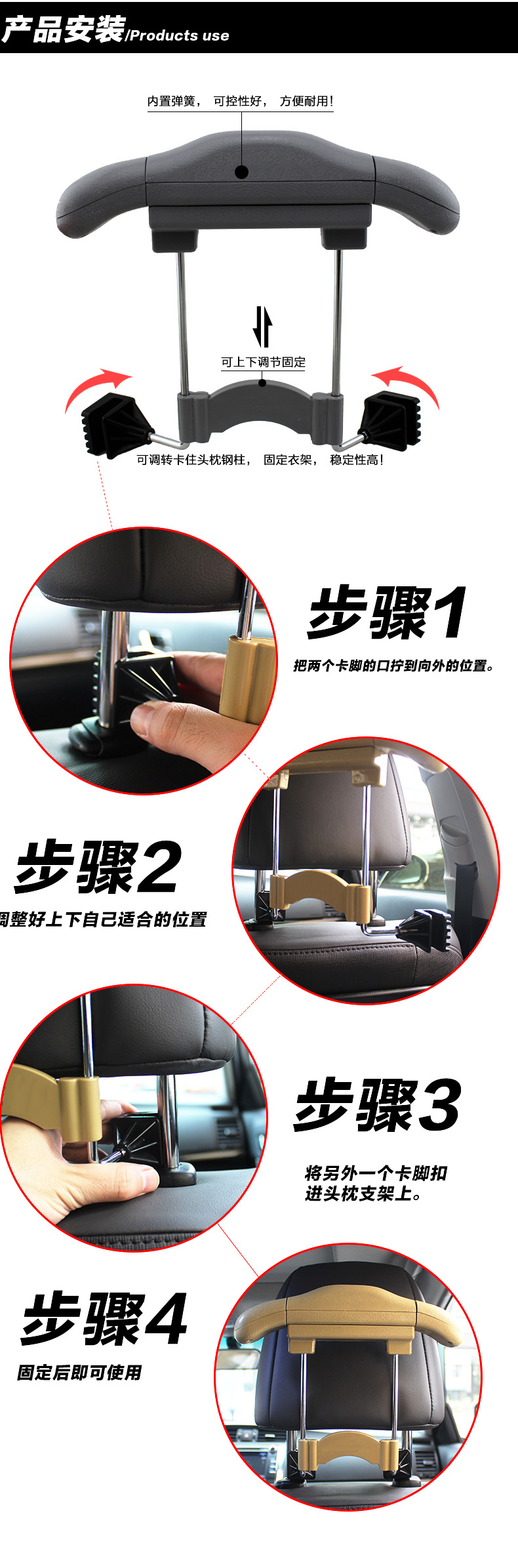 【方便、简易的安装】 无需拆卸头枕,固定于汽车前座头枕的钢柱处。