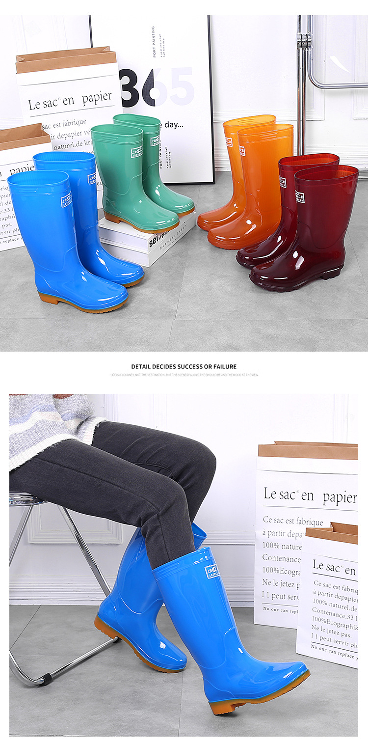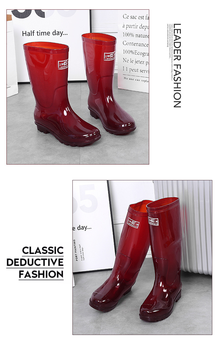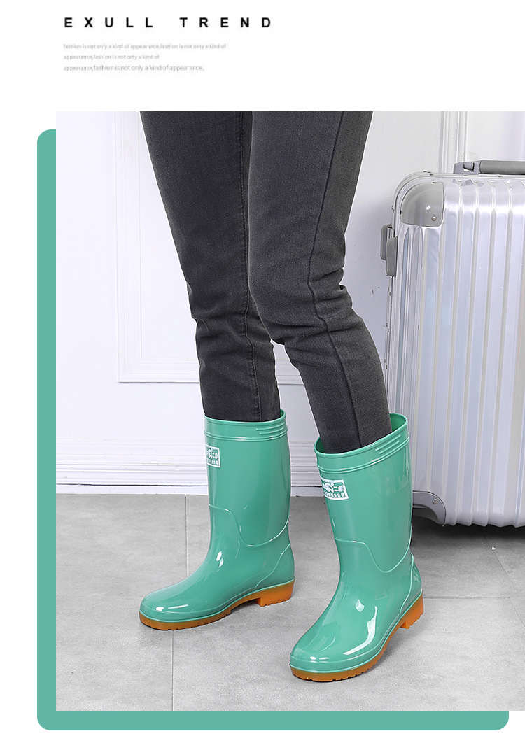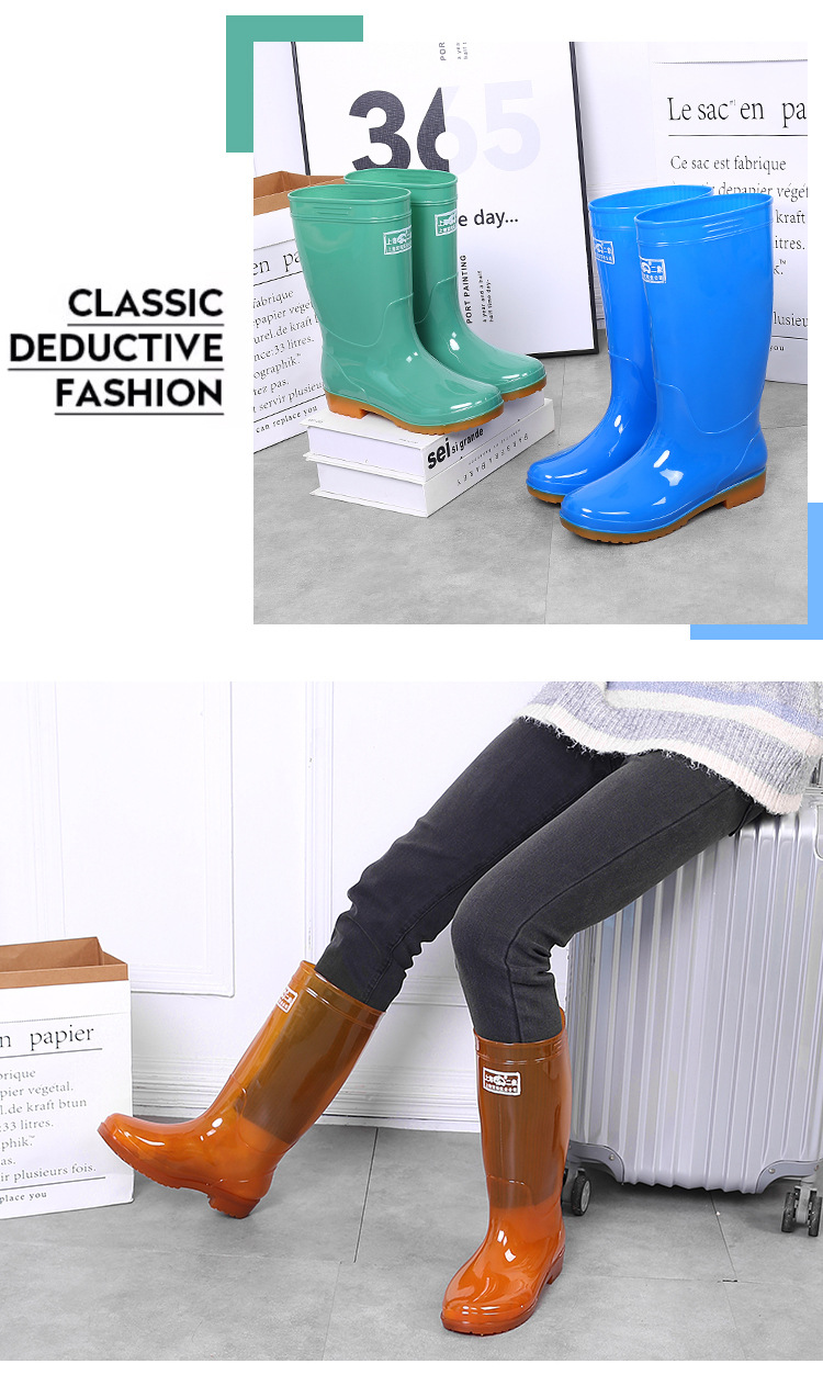 상하이 더블 머니 두 코끼리 여성 높은 비 부츠 황금 노란색 낮은 힐 지양 물 신발 도매 PVC 비 신발스토어 가기