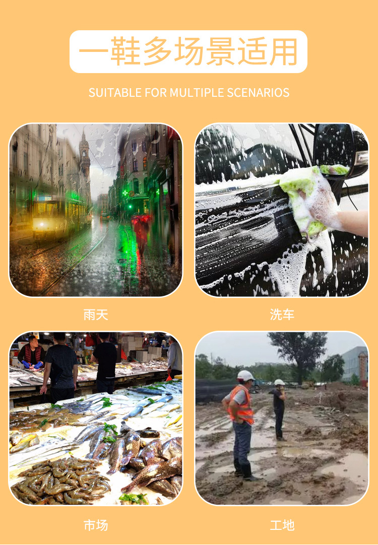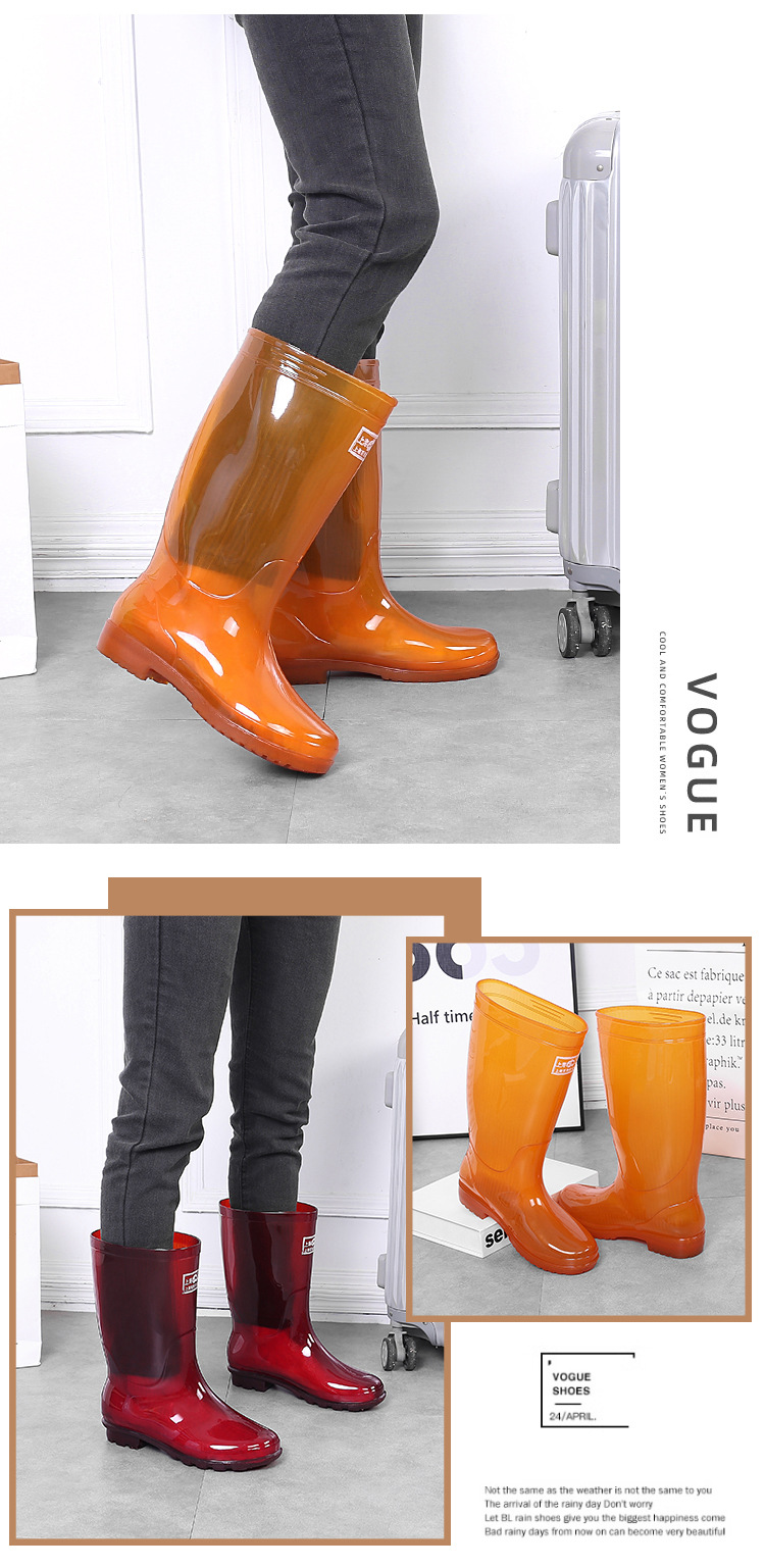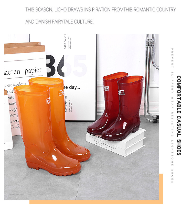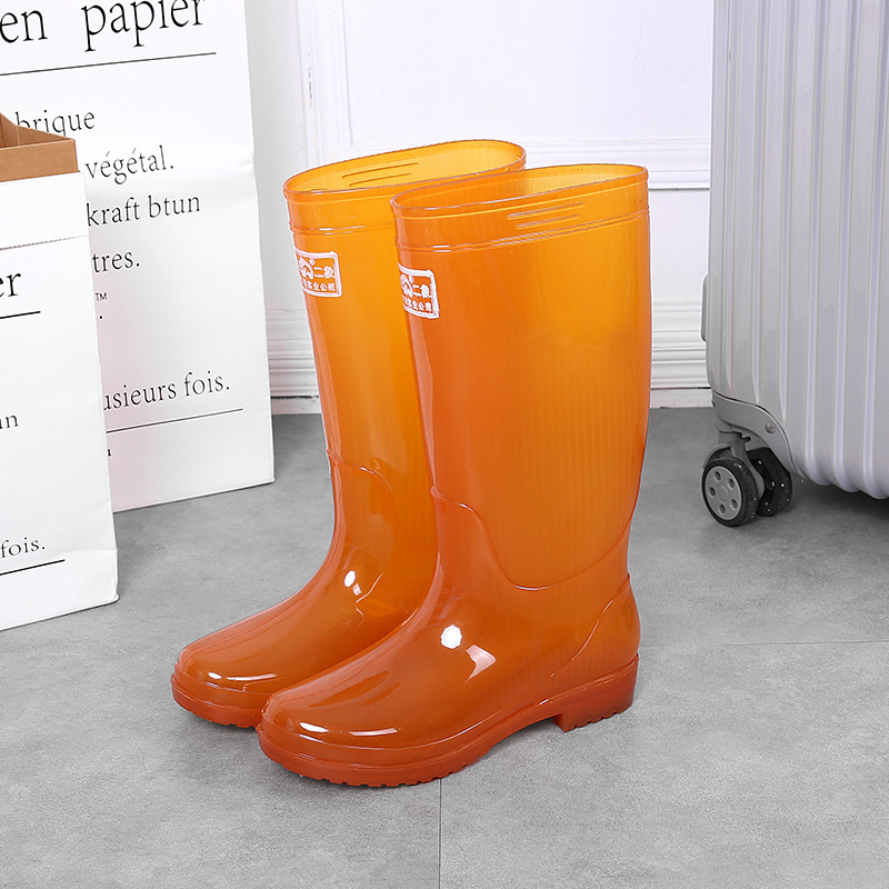 상하이 더블 머니 두 코끼리 여성 높은 비 부츠 황금 노란색 낮은 힐 지양 물 신발 도매 PVC 비 신발