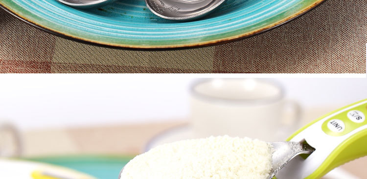 电子量勺,对小重量物品如面粉、牛奶、食用油等可以进行精确的称量,三个重量单位任意切换,LCD显示,易读易用,外观小巧时尚,放置方便不占地方;本品可应用于烹饪、儿童喂食、药房计量、病人进食计量等多种场合,让您的工作生活无微不至,更加科学健康。