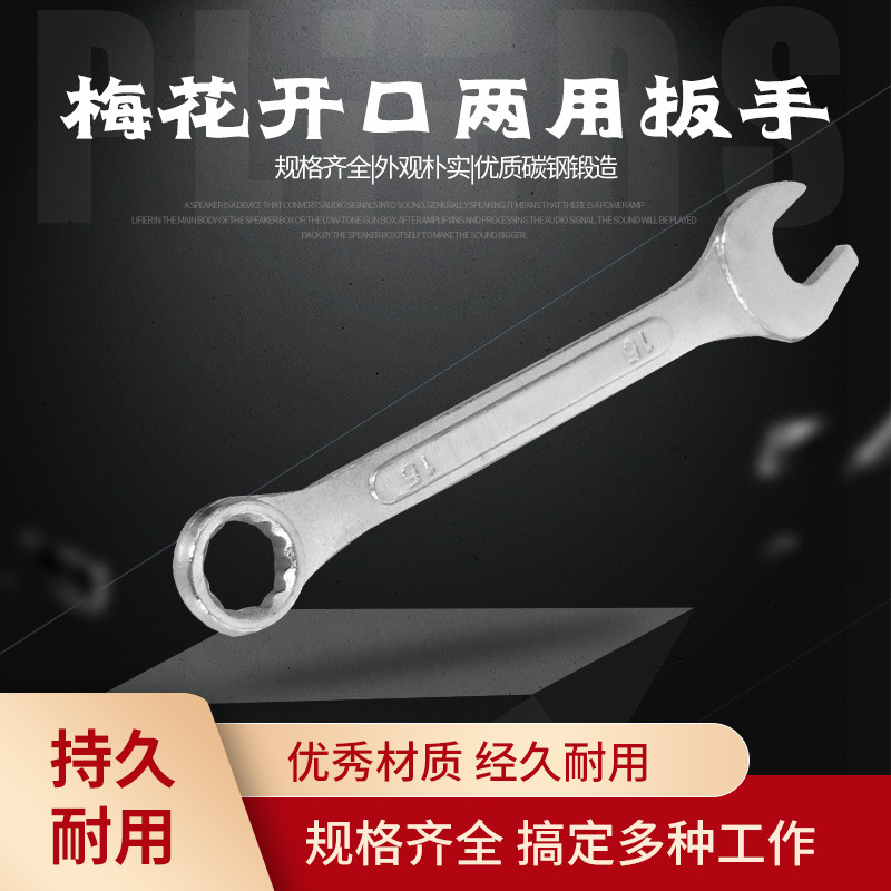 本产品为梅花开口两用扳手,采用45#中碳钢经过高温过火,硬度达到42-46度.手握部分采用凸筋设计,经济实用,欢迎来电咨询……