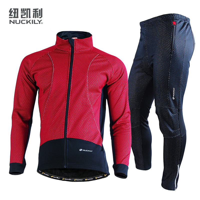 NUCKILY 겨울 야외 스포츠 사이클링 제품 도매 자전거 플리스 보온 사이클링 의류 세트 남성용 오프로드스토어 가기