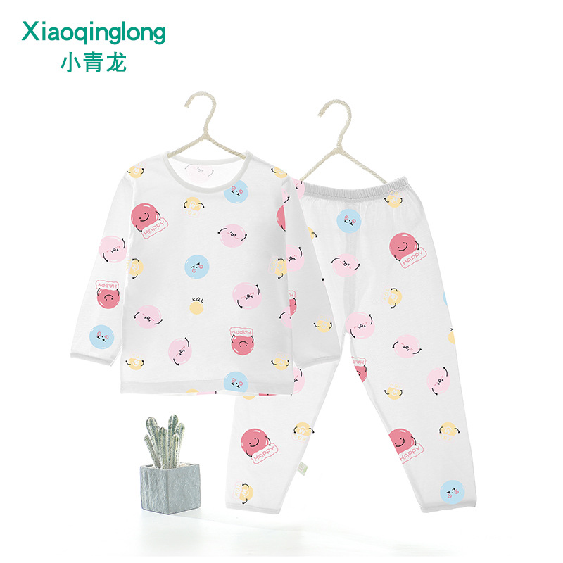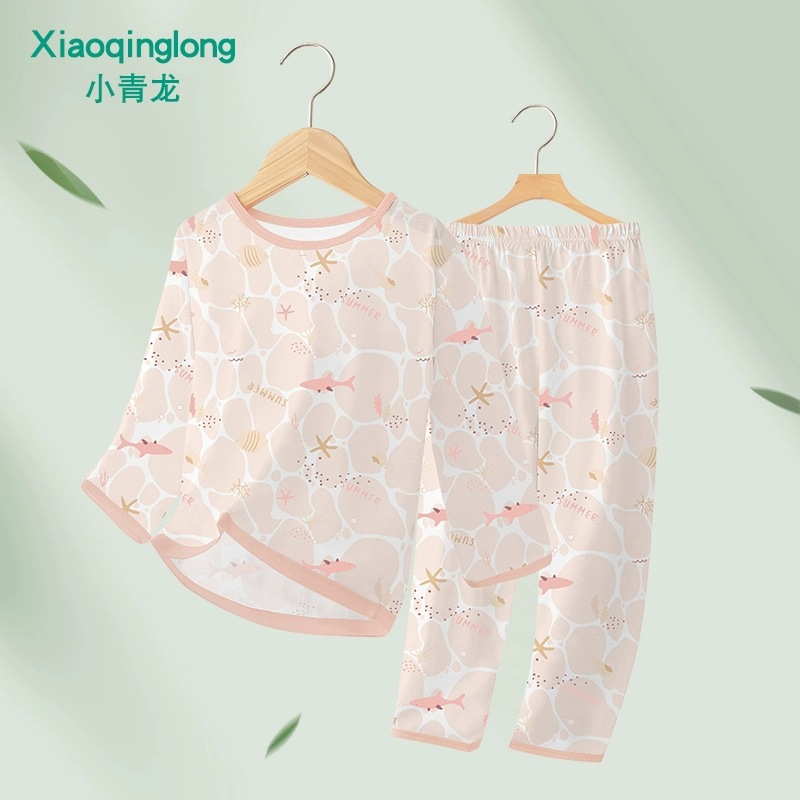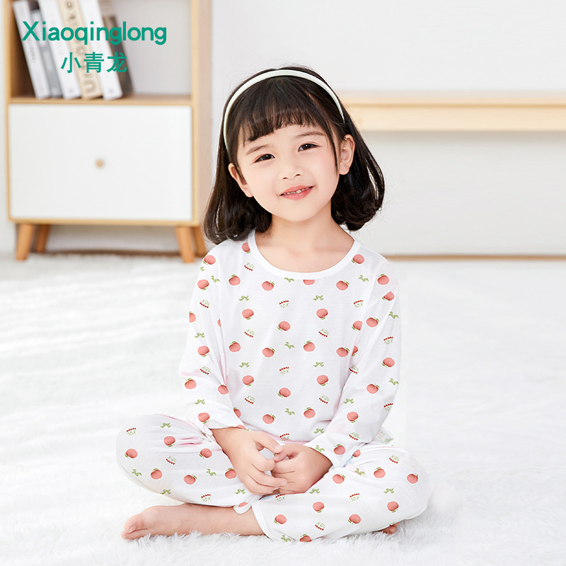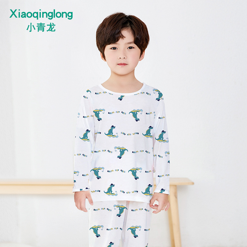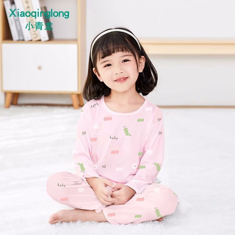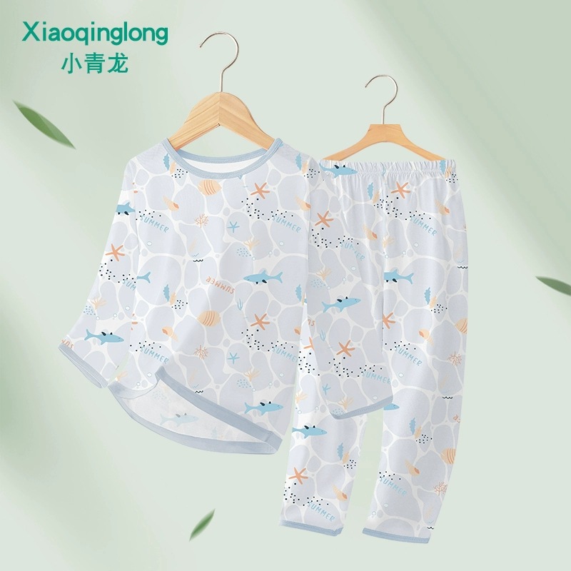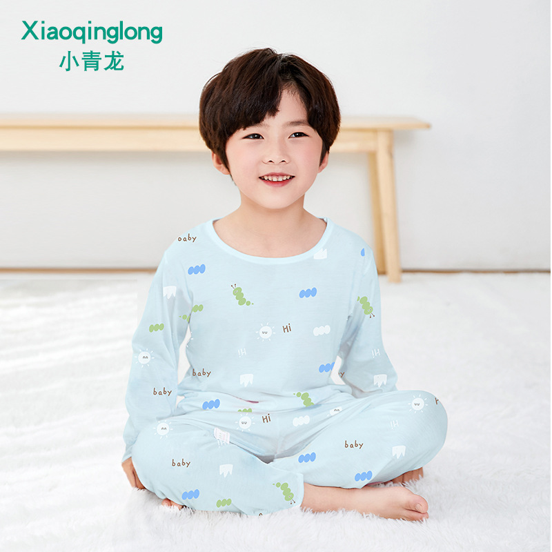 Xiao Qinglong 여름 얇은 대나무 섬유 속옷 긴팔 어린이 가정복 잠옷 소년과 소녀를위한 아기의 에어컨 의류스토어 가기