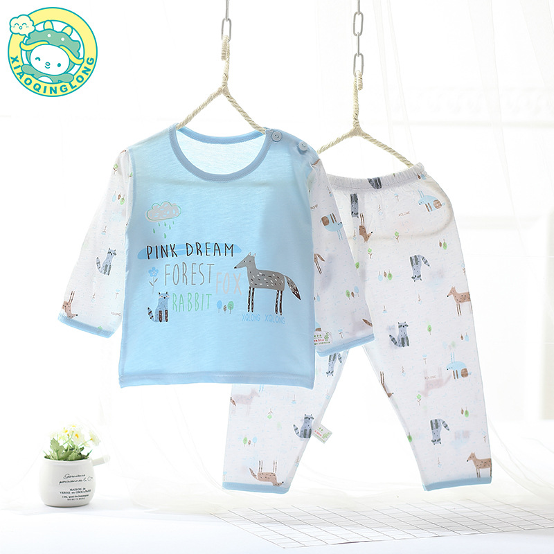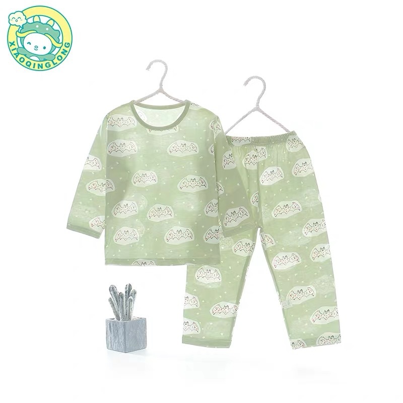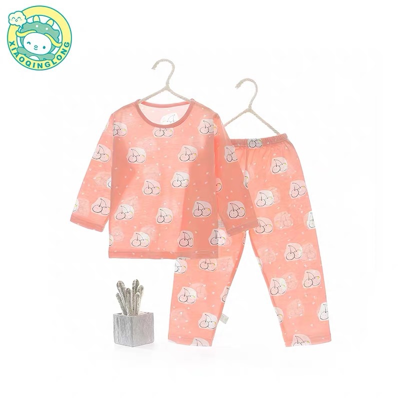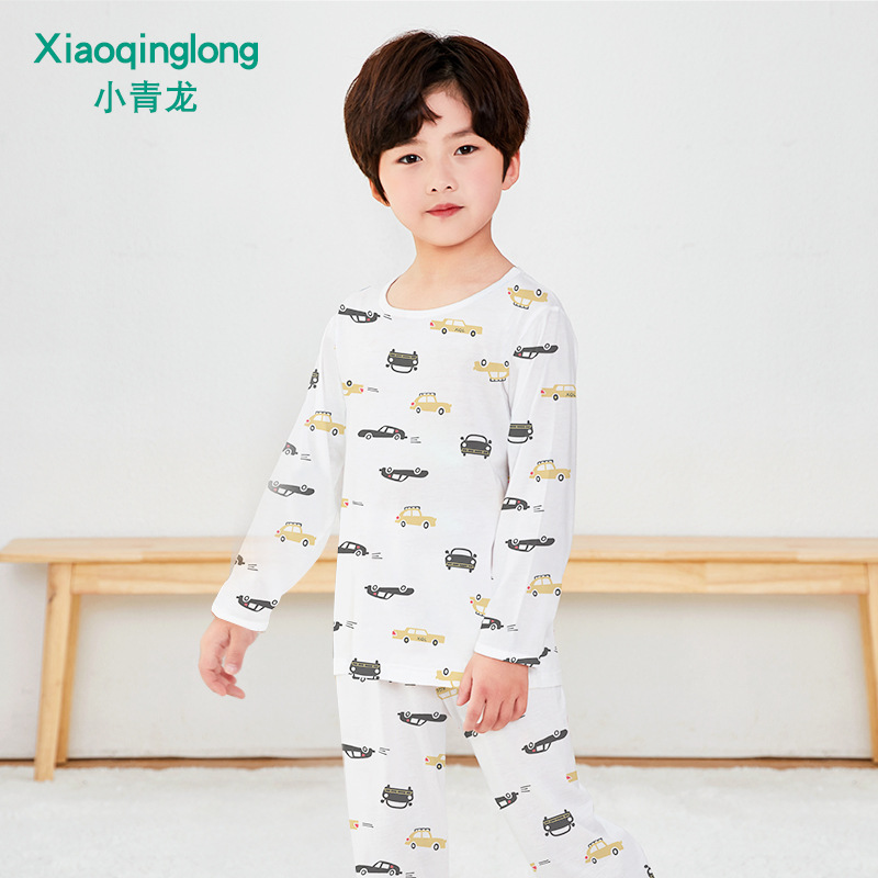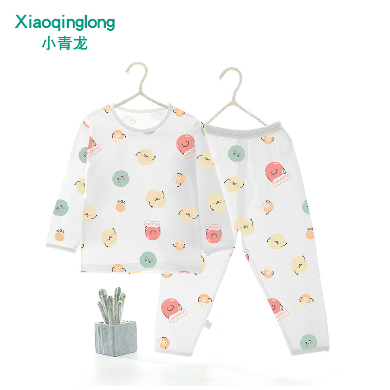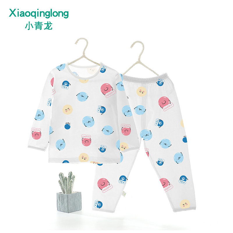 Xiao Qinglong 여름 얇은 대나무 섬유 속옷 긴팔 어린이 가정복 잠옷 소년과 소녀를위한 아기의 에어컨 의류스토어 가기
