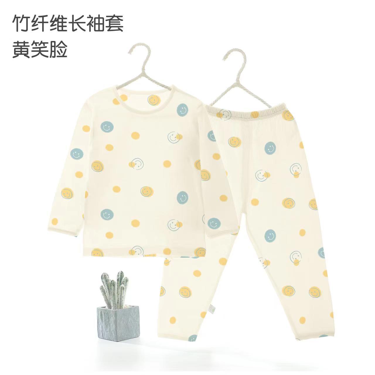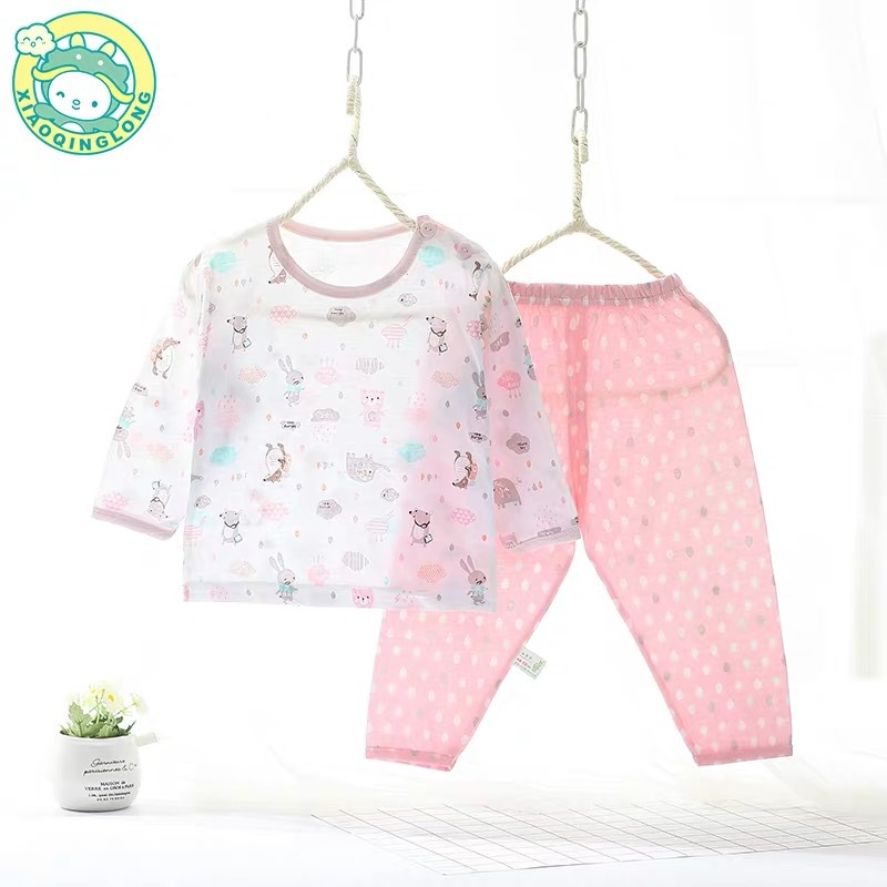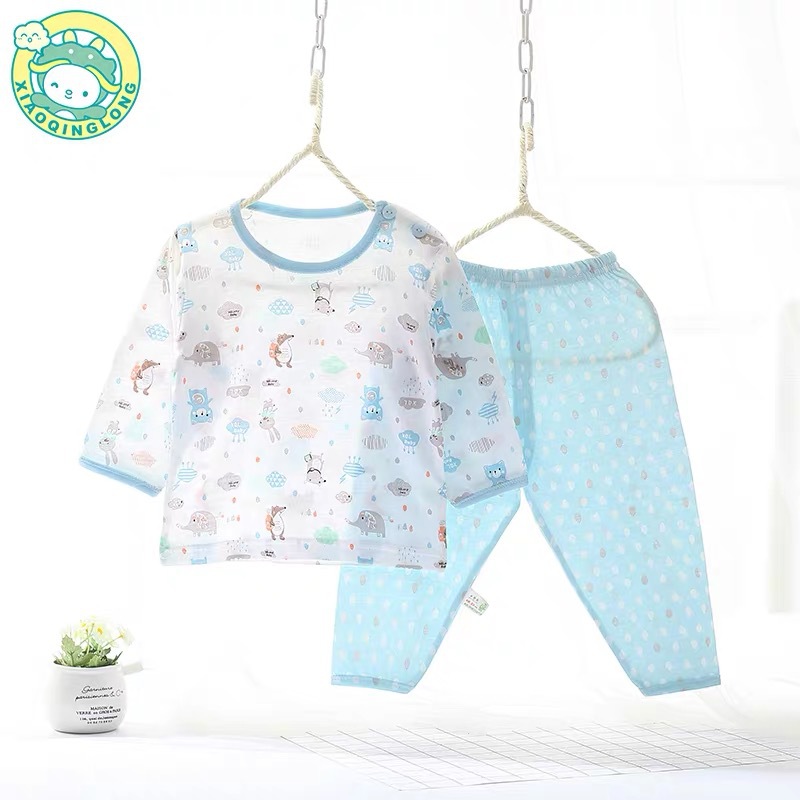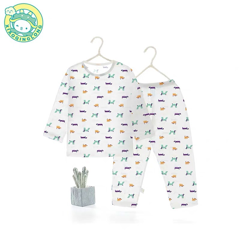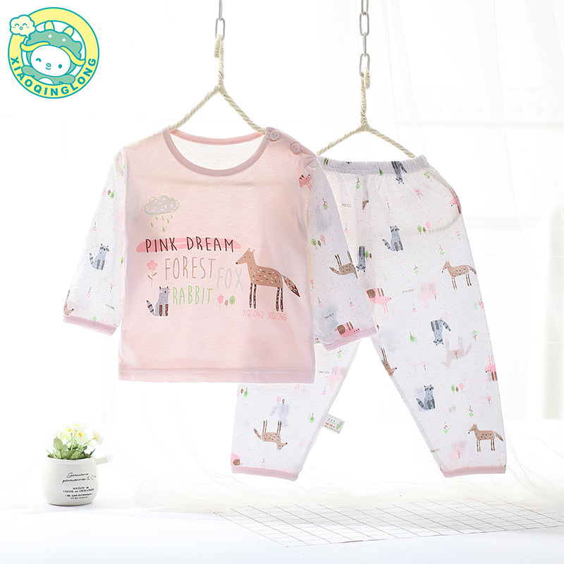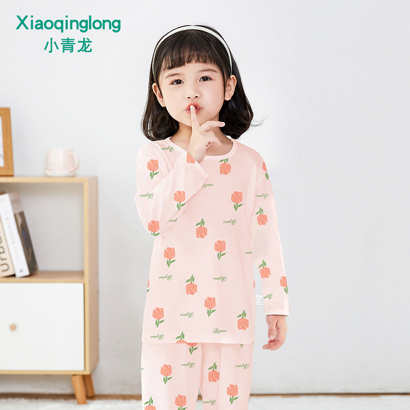 Xiao Qinglong 여름 얇은 대나무 섬유 속옷 긴팔 어린이 가정복 잠옷 소년과 소녀를위한 아기의 에어컨 의류스토어 가기