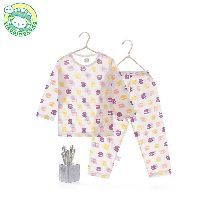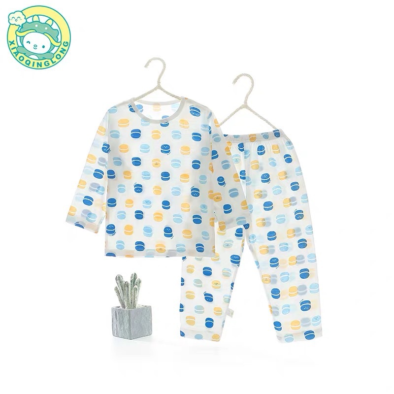 Xiao Qinglong 여름 얇은 대나무 섬유 속옷 긴팔 어린이 가정복 잠옷 소년과 소녀를위한 아기의 에어컨 의류