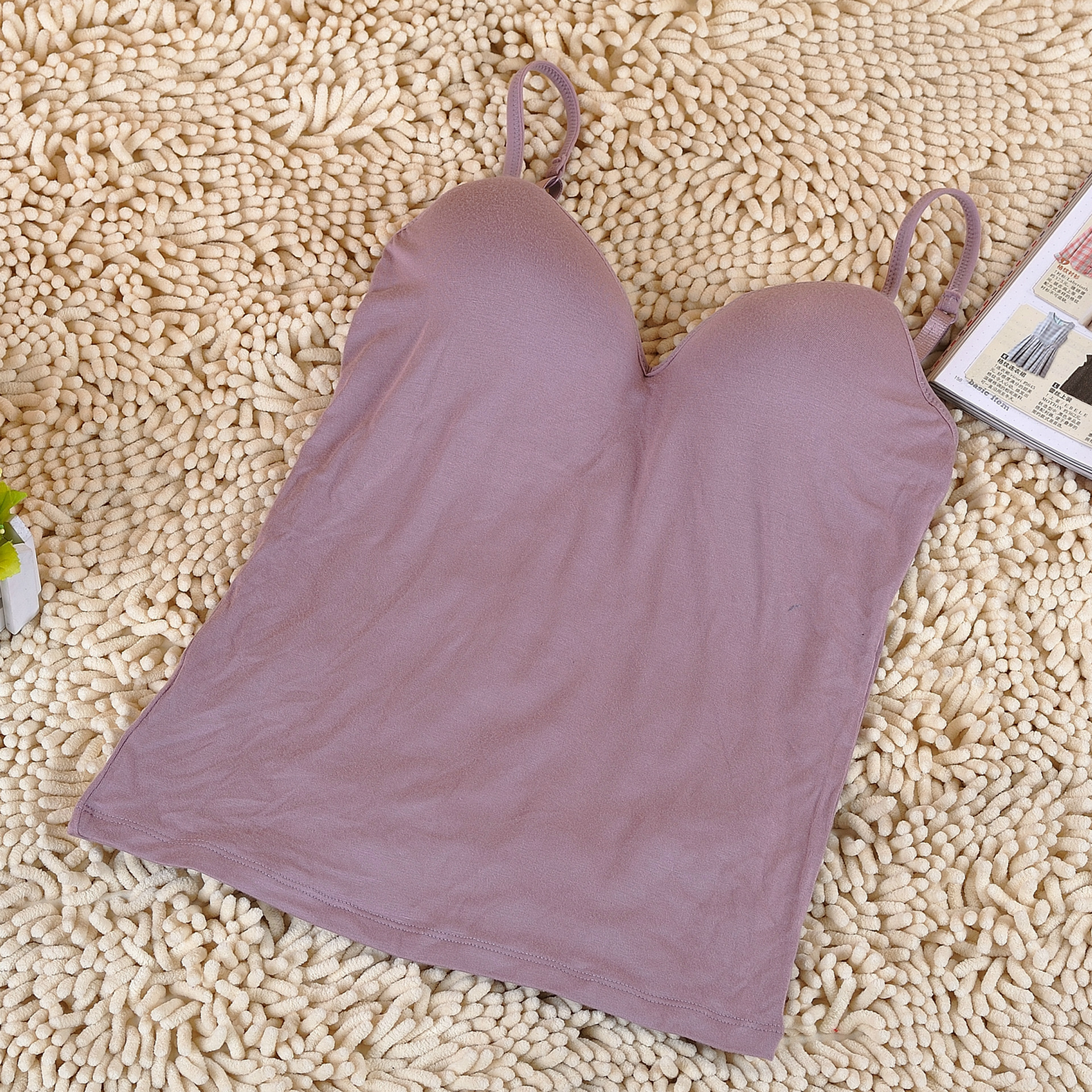 [클리어런스] 와이어가 없는 여성용 모달 패딩 조끼, 조절 가능한 내부가 있는 올인원 캐미솔 바닥 셔츠스토어 가기
