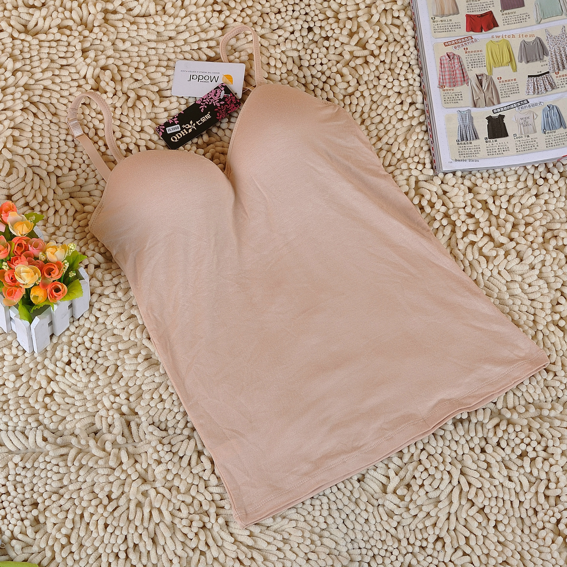 [클리어런스] 와이어가 없는 여성용 모달 패딩 조끼, 조절 가능한 내부가 있는 올인원 캐미솔 바닥 셔츠