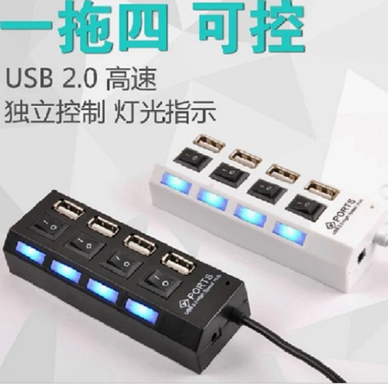 4路 带独立开关 usb2.0 hub集线器外贸英文版