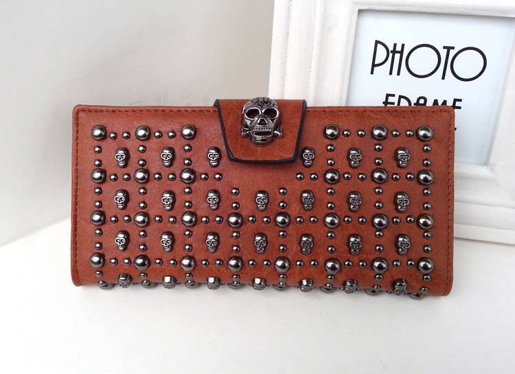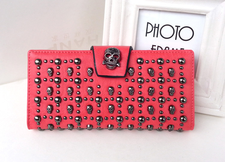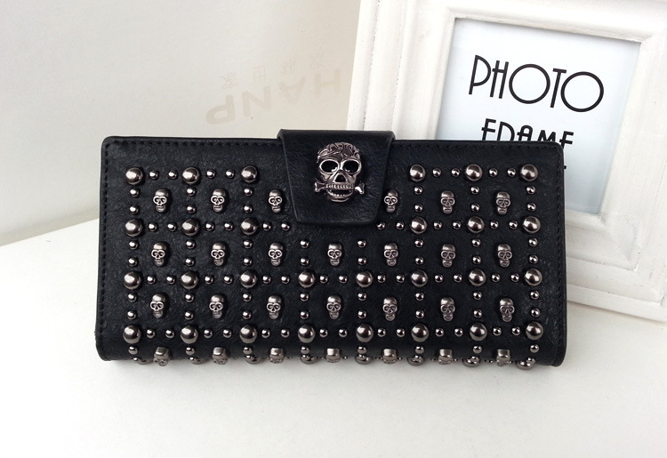 2019 새로운 해골 여성용 긴 지갑 버클 리벳 동전 지갑 유럽 및 미국 휴대용 여성용 지갑스토어 가기