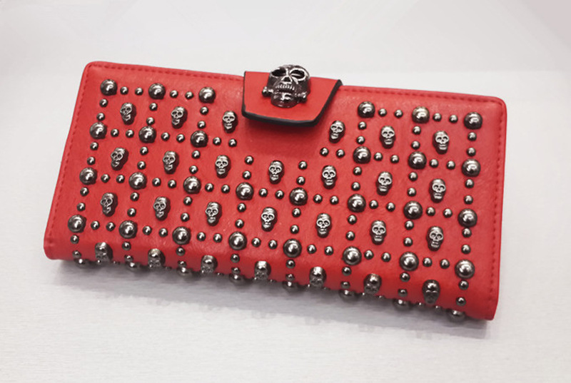 2019 새로운 해골 여성용 긴 지갑 버클 리벳 동전 지갑 유럽 및 미국 휴대용 여성용 지갑