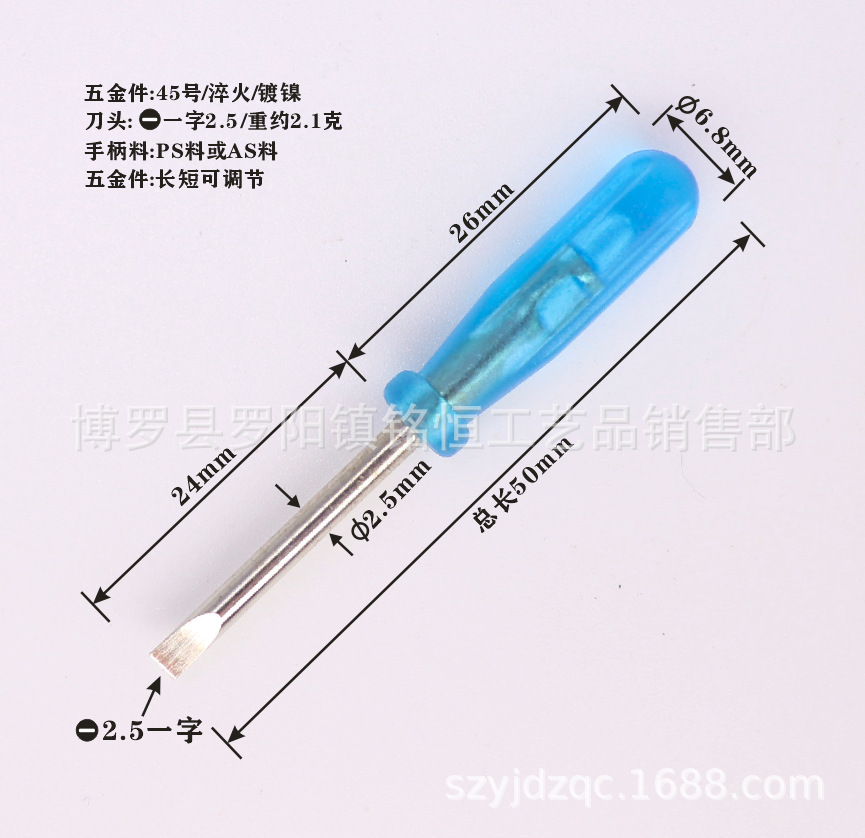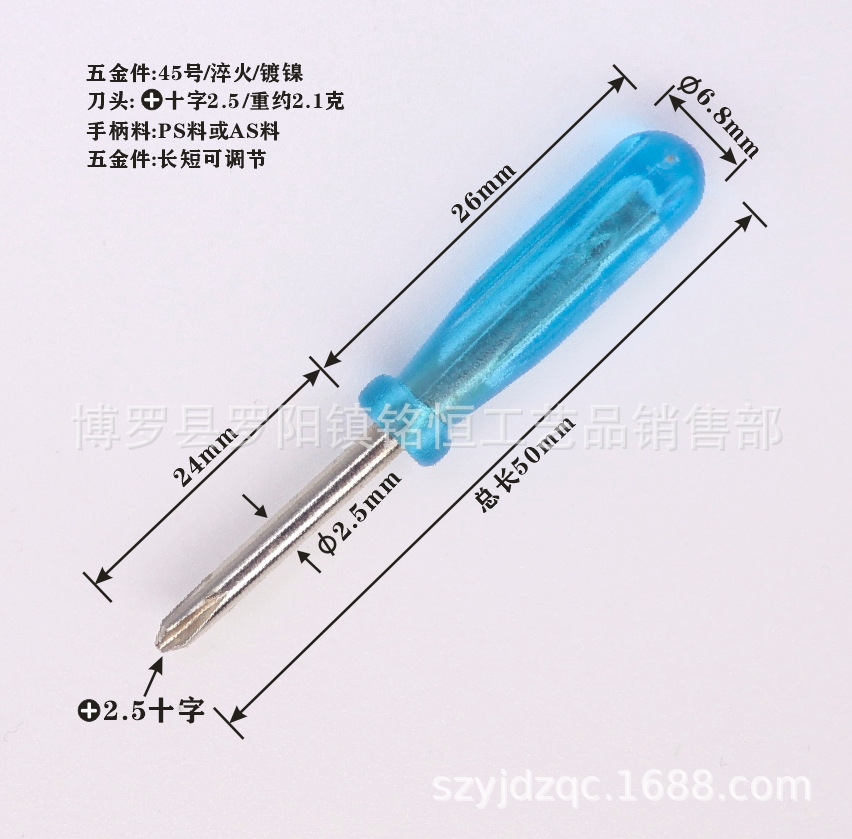 产品总长45MM至50MM*五金刀杆直径2.5MM*塑胶刀柄直径6.8MM/塑胶柄长26mm五金刀杆可根据客人要求更换不同型号刀杆.十字/米字/梅花/等.质量保证,交货及时,欢迎前来选购!洽谈。