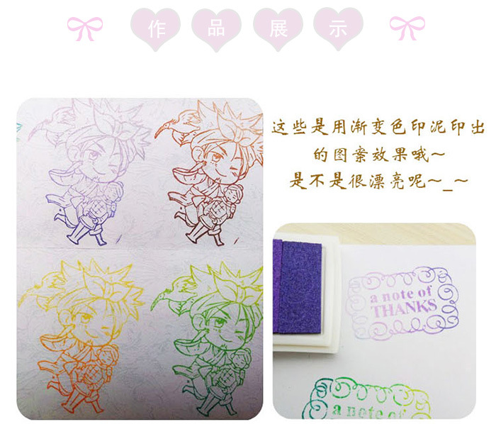 产品详情:印泥为海绵水性印泥,渐变色的颜色 可以让亲们将DIY发挥。