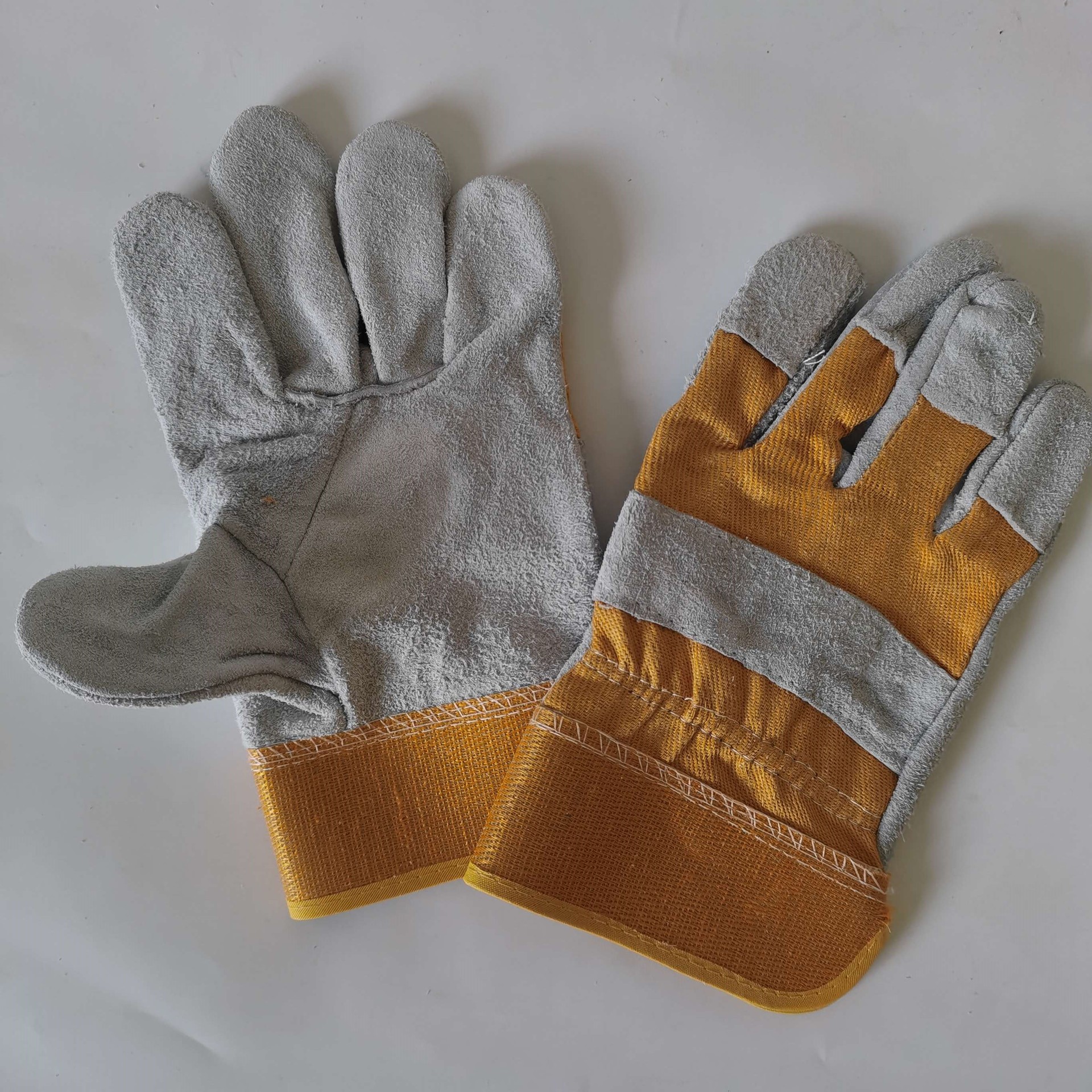 以下款式均是牛皮厂修剪出来的边角料皮做的统级皮手套,皮有厚有薄,有些皮有暗色暗脏污点,不是很白净或有些铁锈痕类的小污点,这些手套手工繁多,主要在农村生产加工,难免有些小漏针,皮有点小刀伤、小沙眼,对质量要求较高的客户请与客服联系定做高价点的产品。