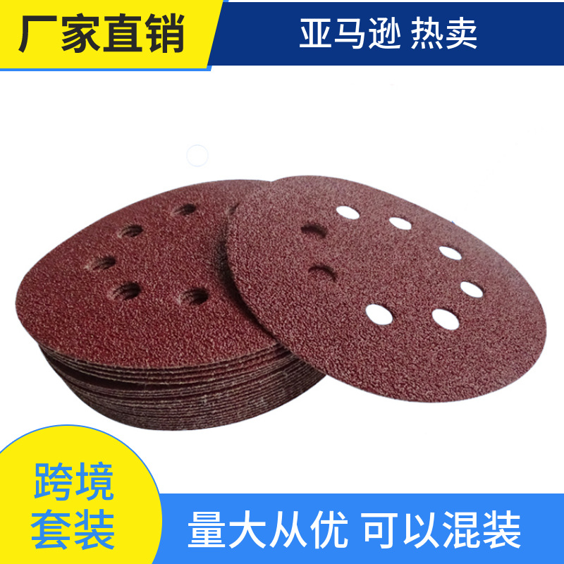 국경 간 붉은 모래 몰려 5 인치 8 홀 백 벨벳 디스크 사포 공기 연삭 몰려 사포 백 벨벳 사포 디스크 모래