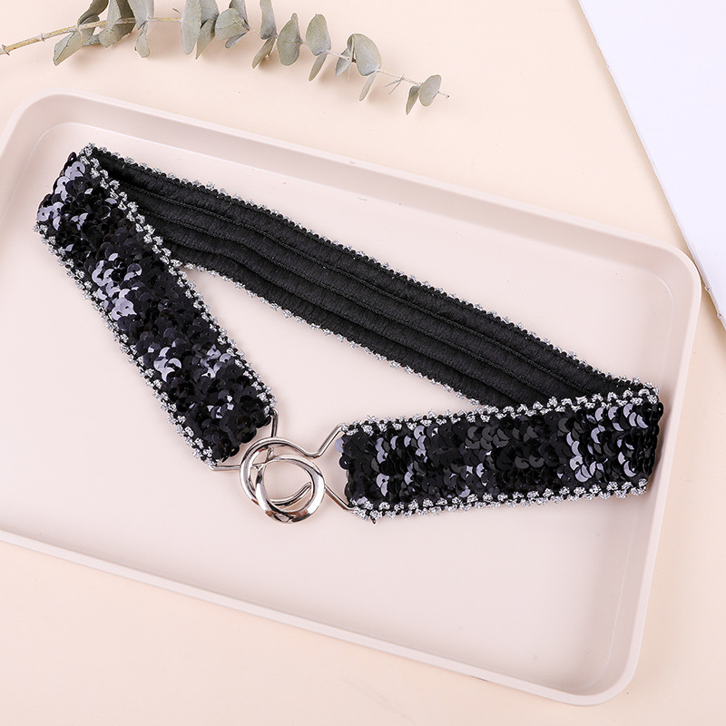 스팽글 벨트 화려한 패션 성인 어린이 여성 벨트 도매 탄성 벨트 버클 탄성 벨트 재고스토어 가기