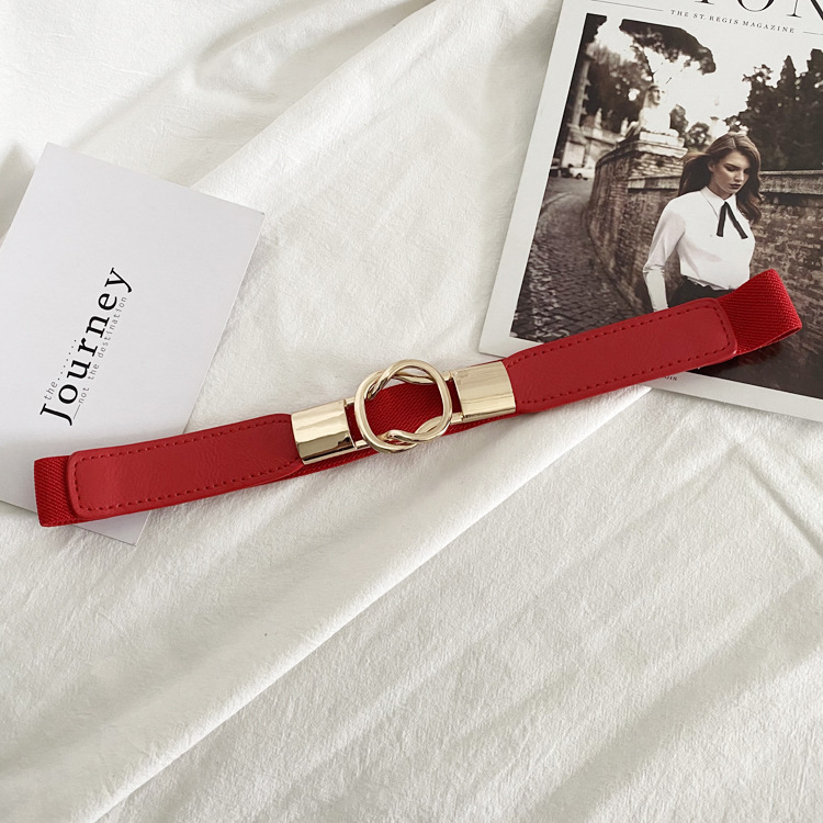 더블 루프 버클 탄성 허리 씰 여자의 장식 원피스 얇은 벨트 한국식 모든 일치 간단한 세트 벨트스토어 가기