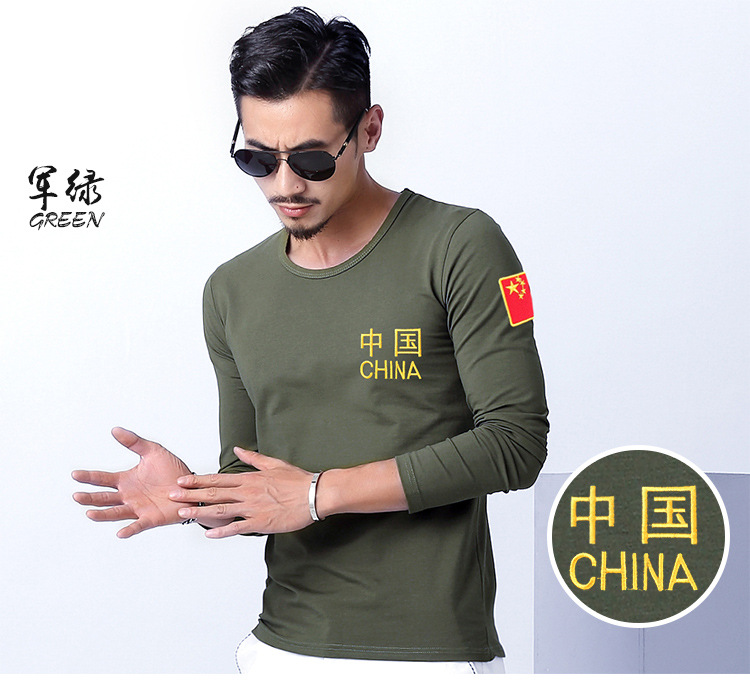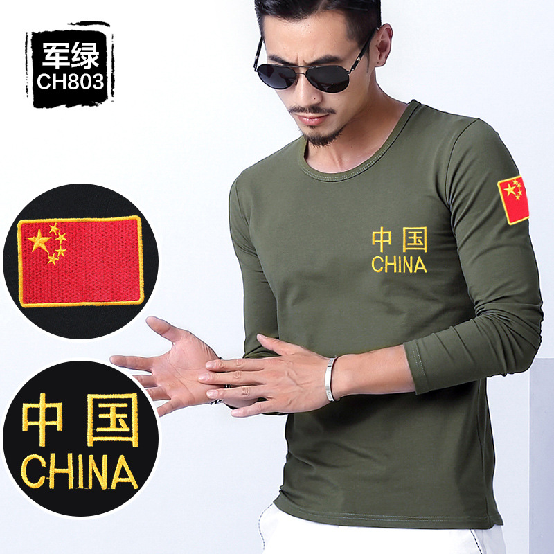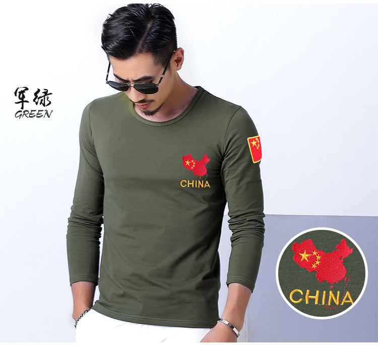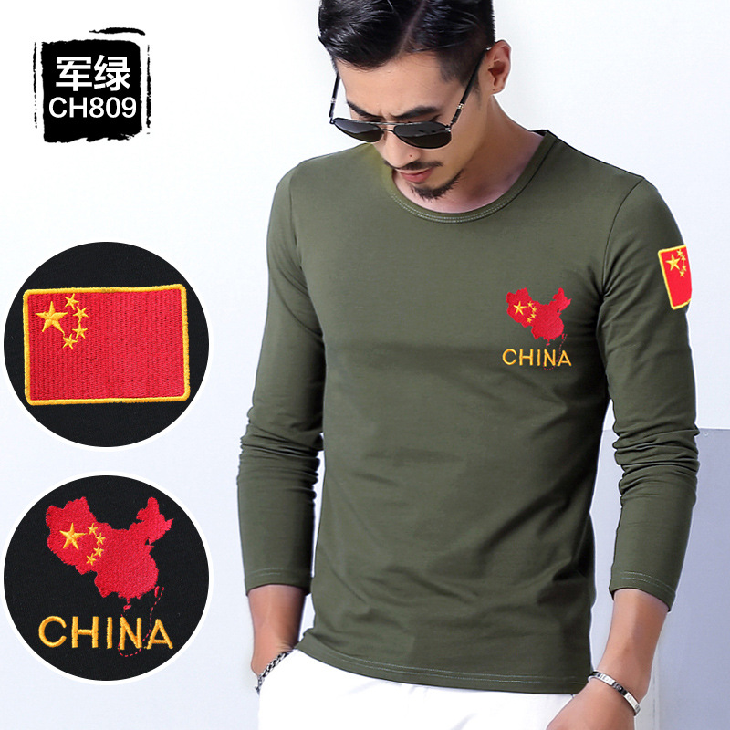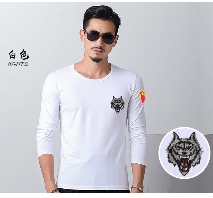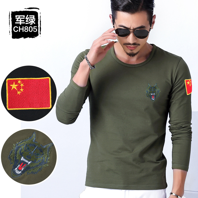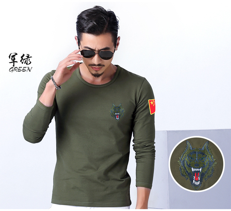 가을 자수 중국 슬림 핏 육군 팬 늑대 머리 물리적 긴 소매 티셔츠 바디 남성용 기본 도매 판매스토어 가기